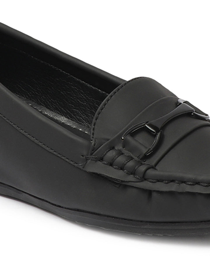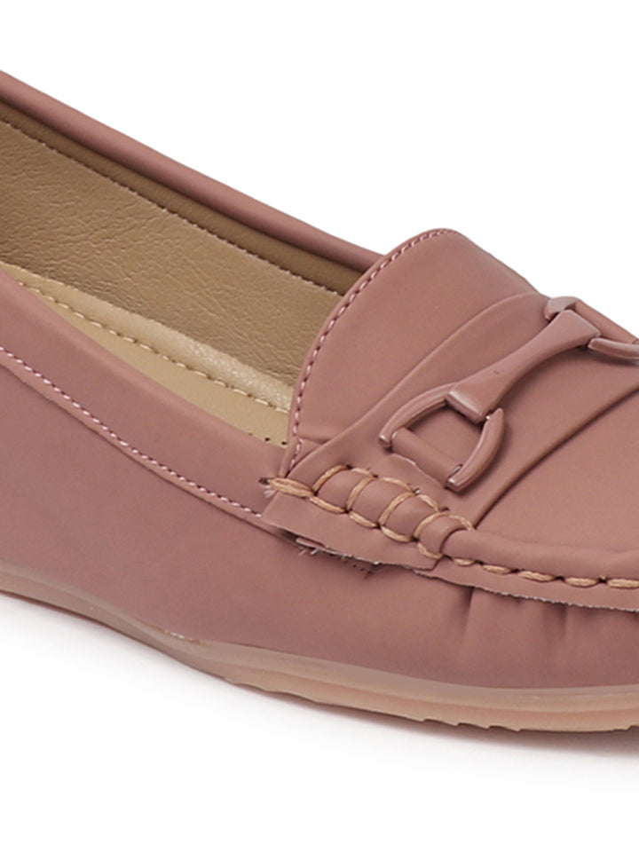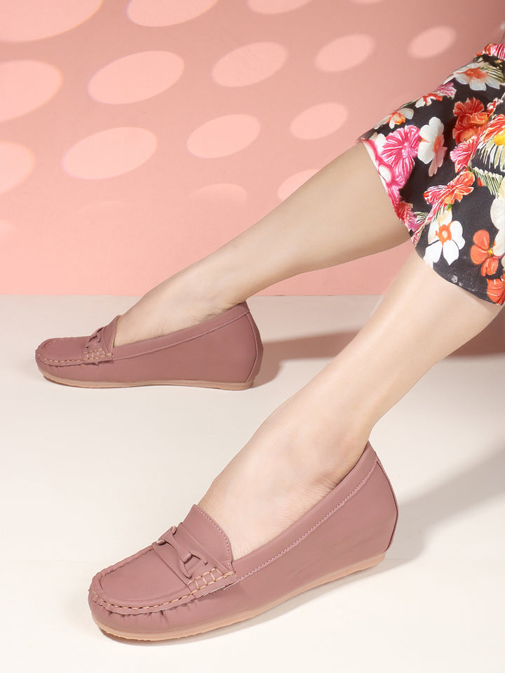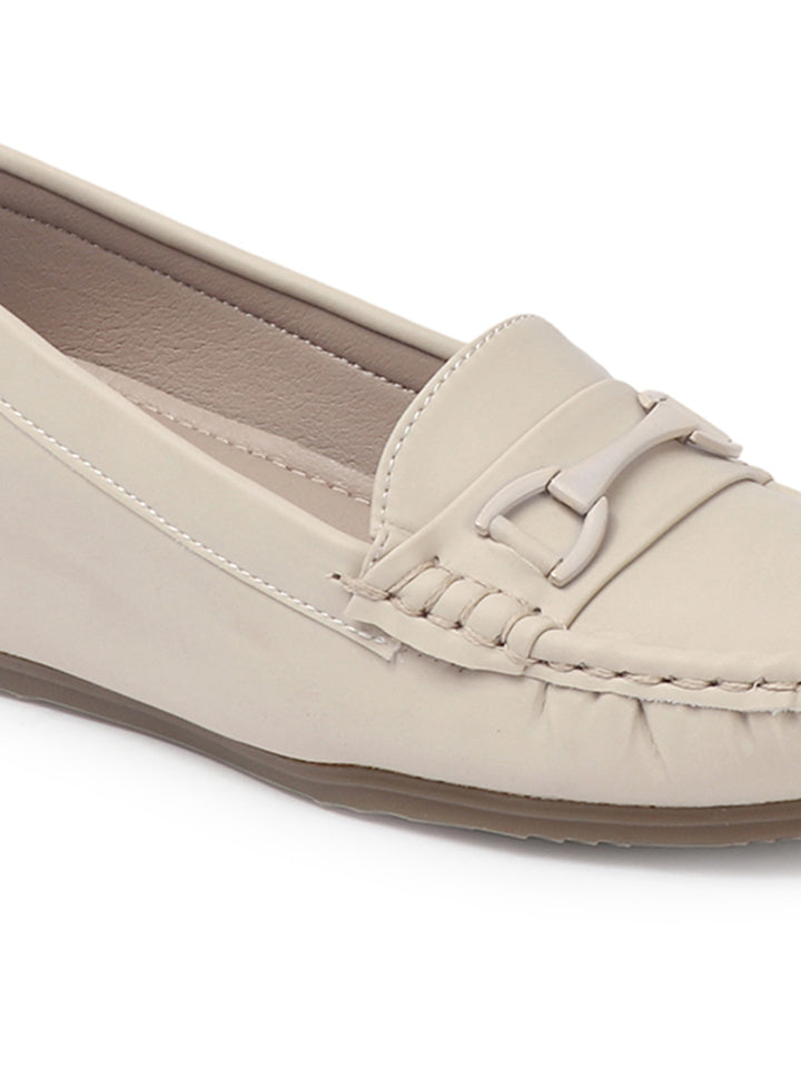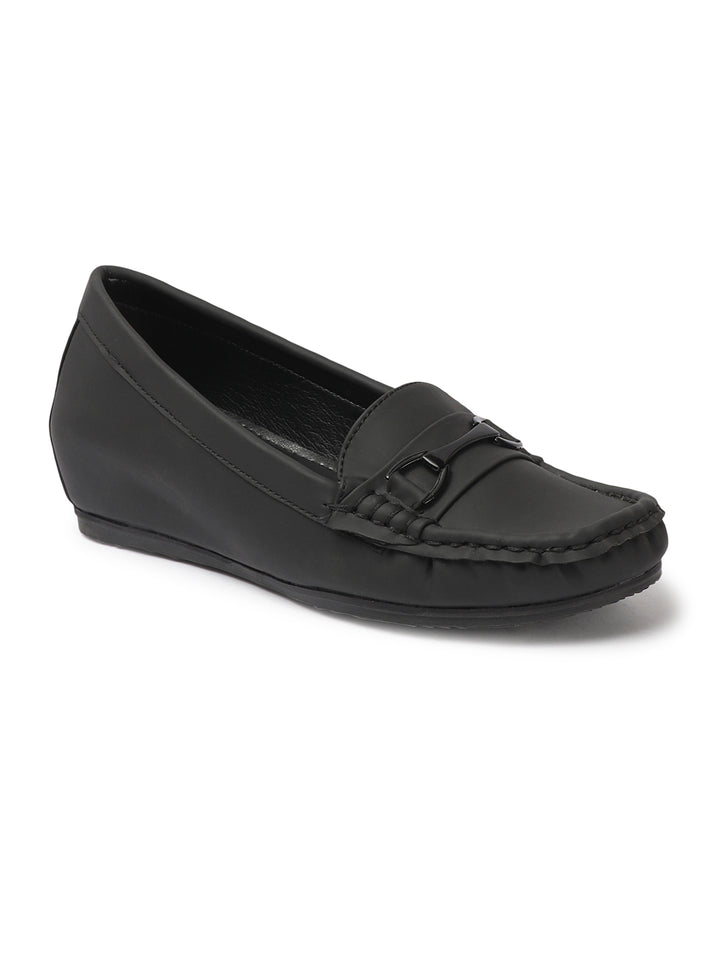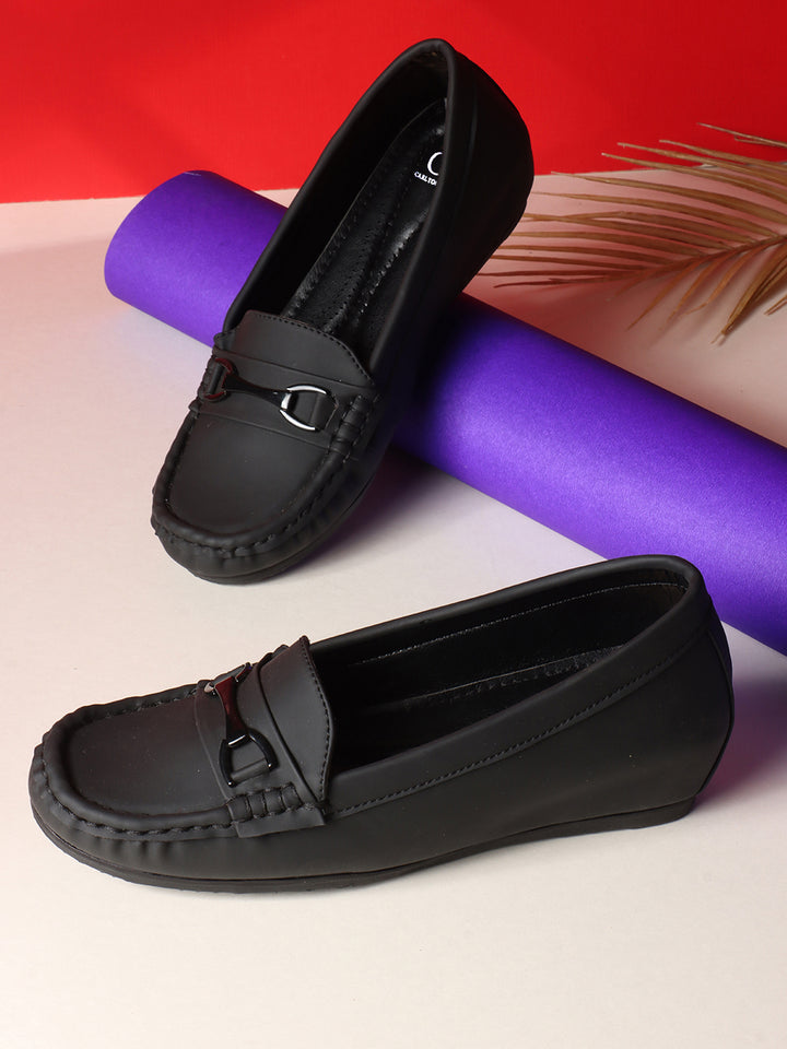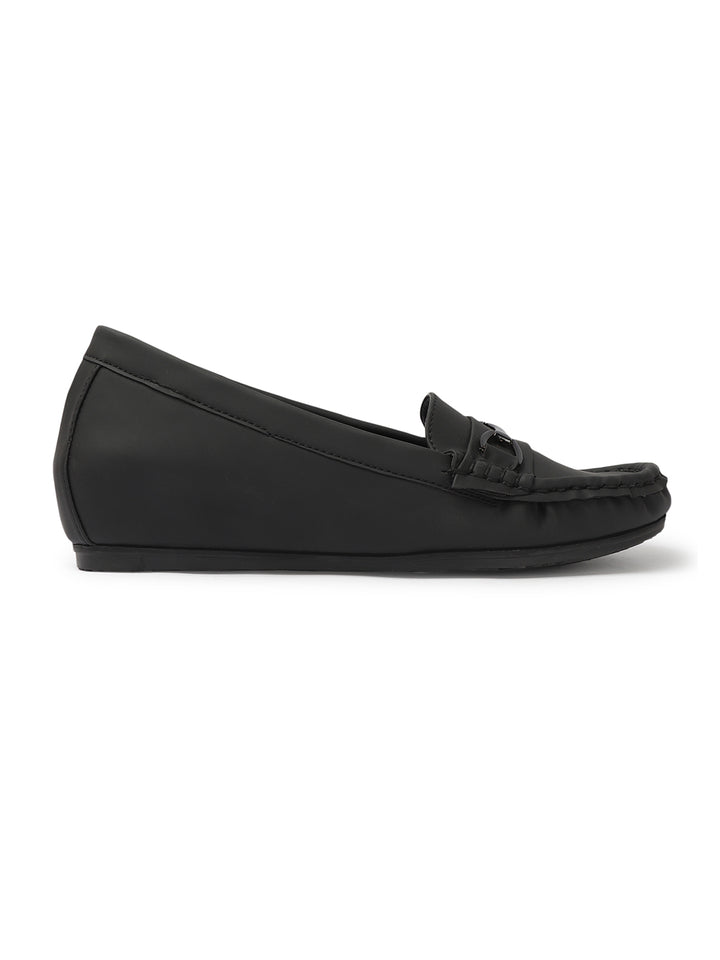 Women's Slip-On Wedge Loafers with Buckle Detail