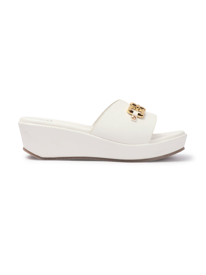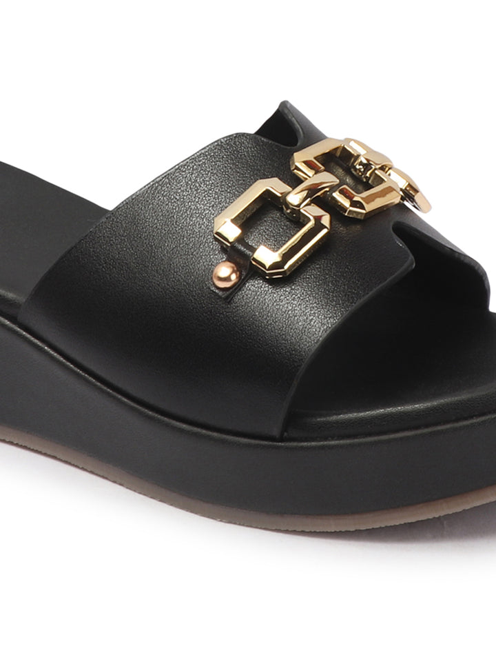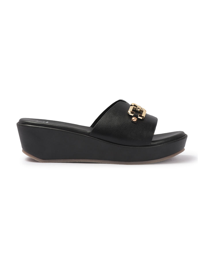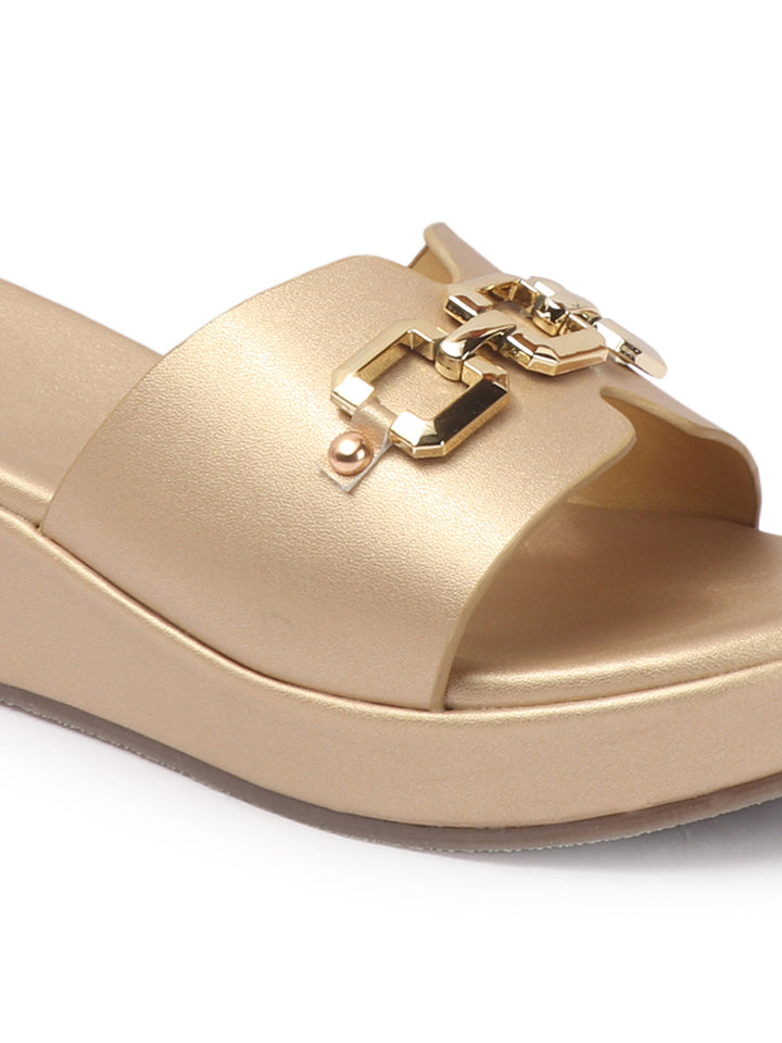 Women's Slip-On Wedge Sandals with Golden Buckle