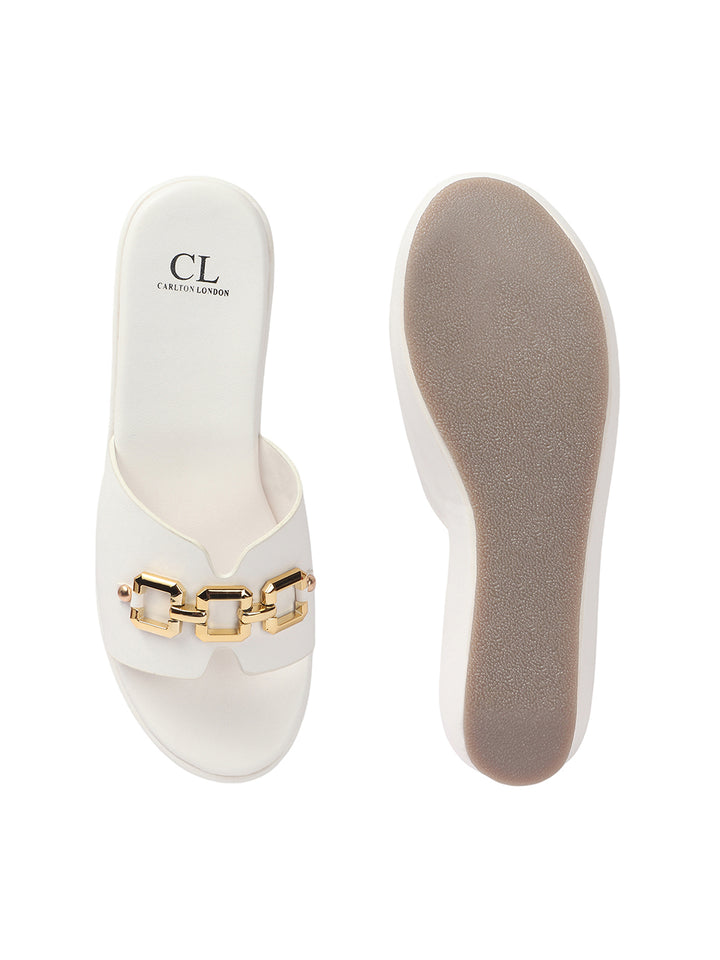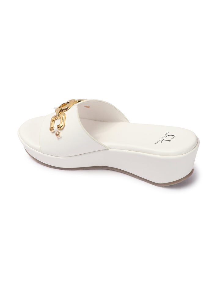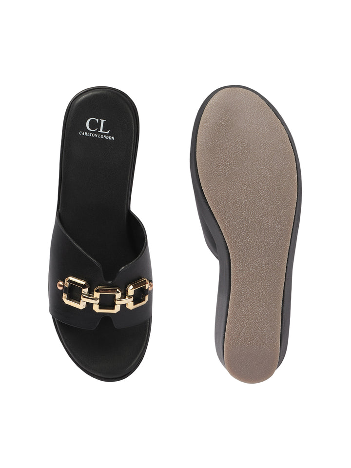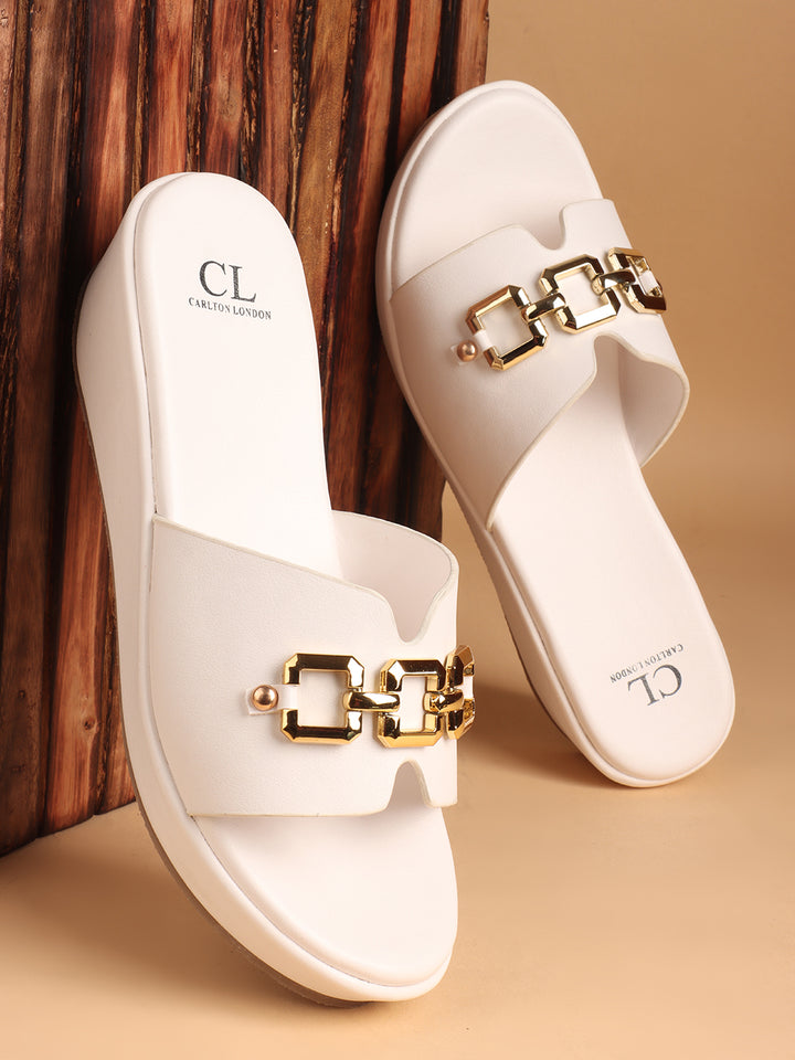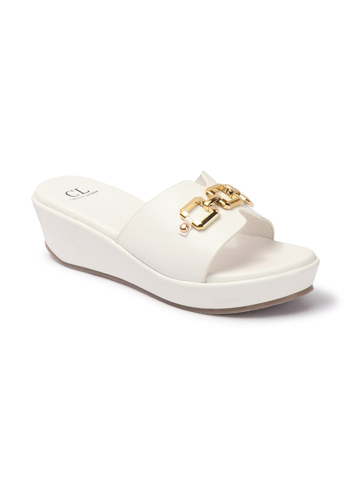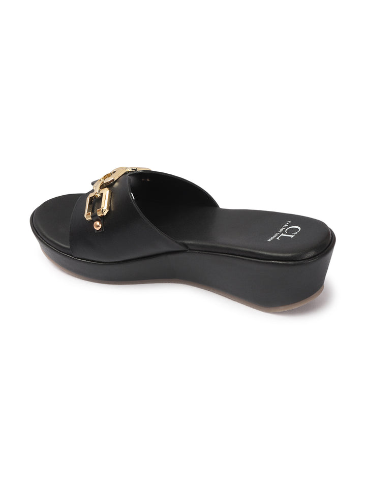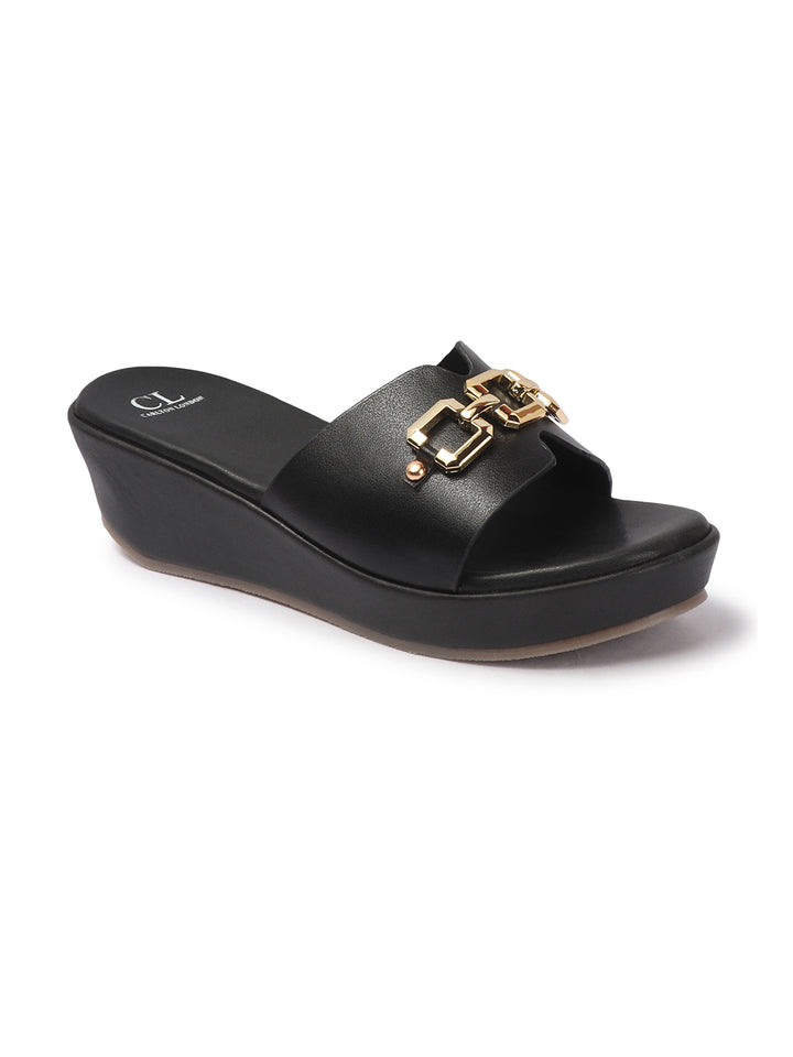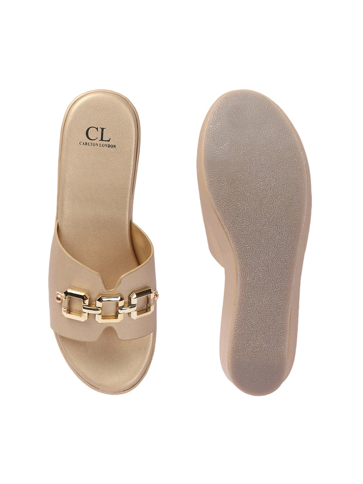 Carlton London Women's Slip-On Wedge Sandals with Golden Buckle