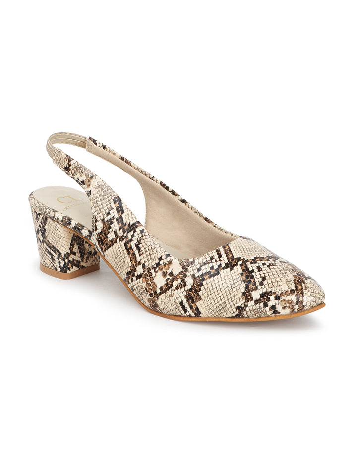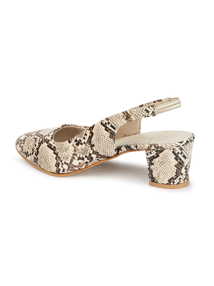 Carlton London Women's Snake Print Slingback Block Heel Sandal