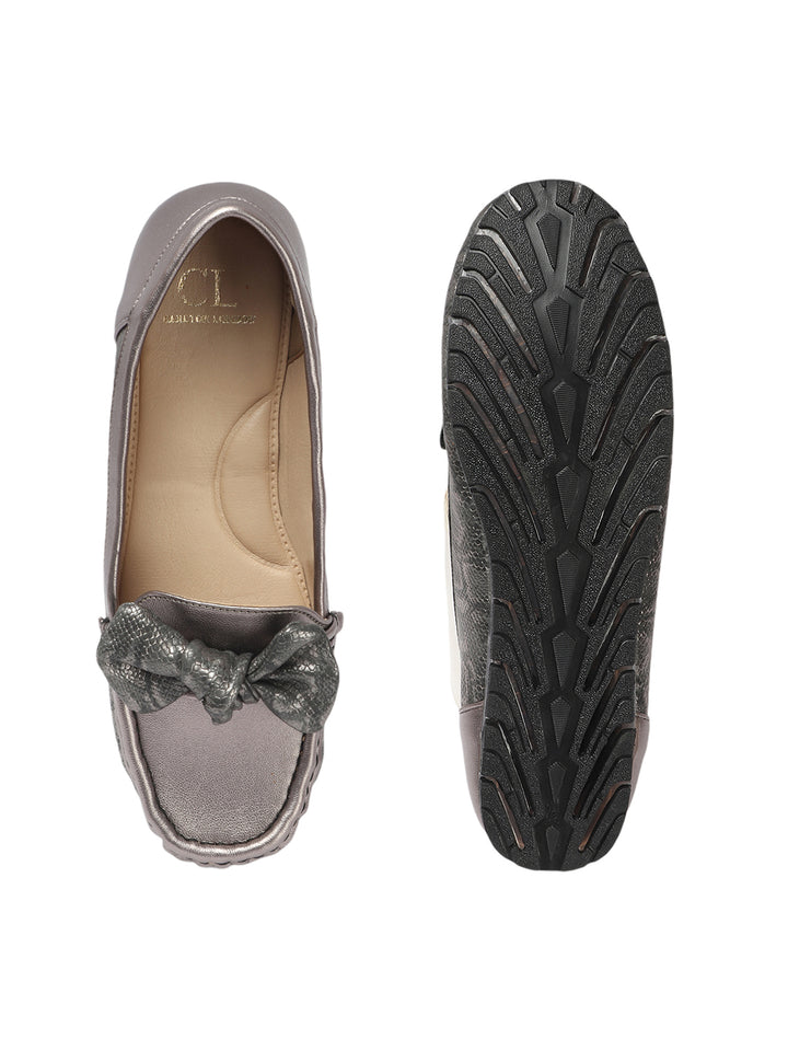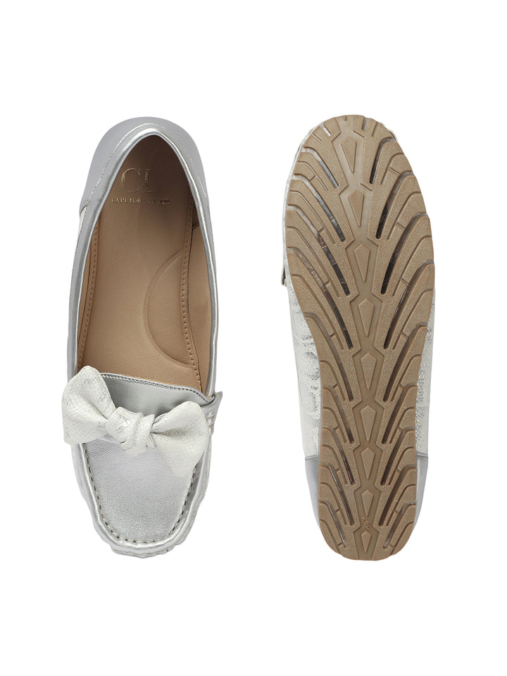 Carlton London Women's Snake Textured Bow Loafers