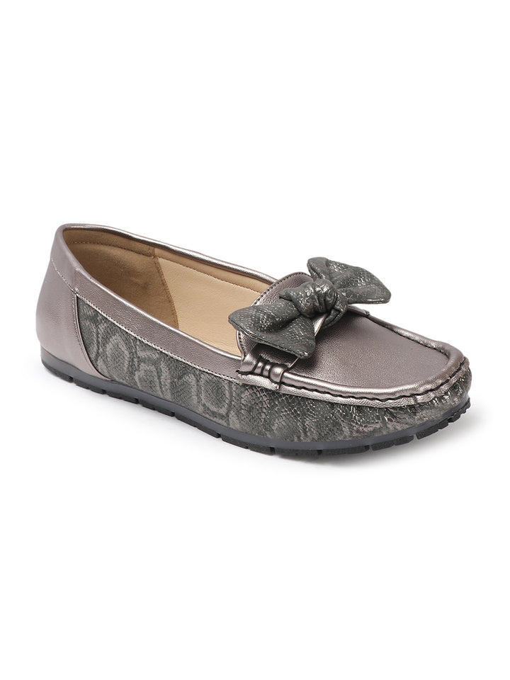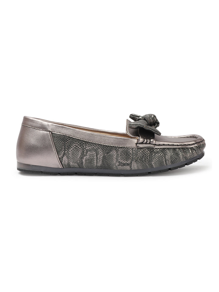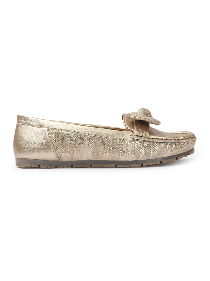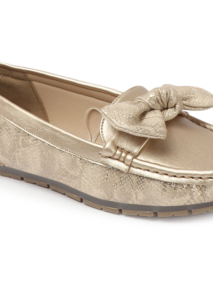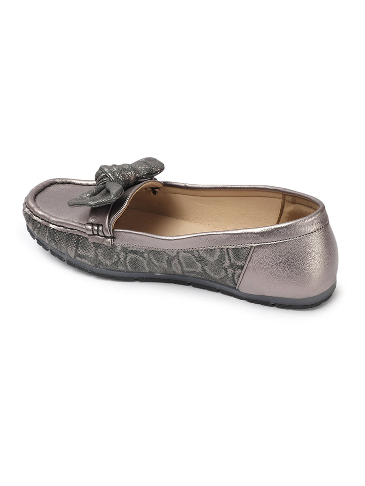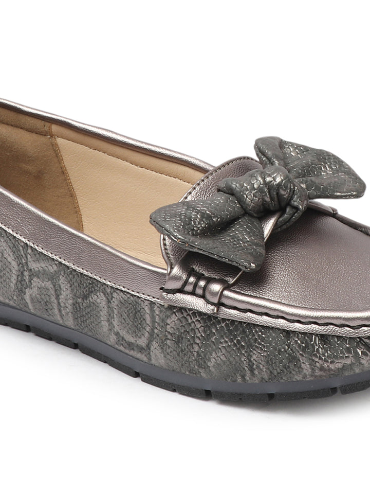 Women's Snake Textured Bow Loafers