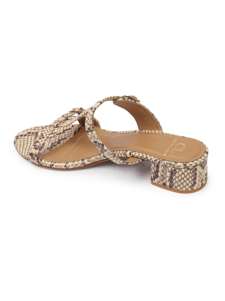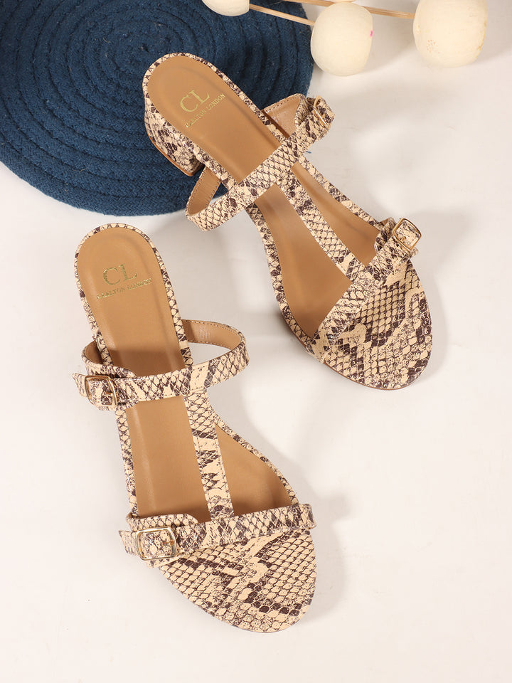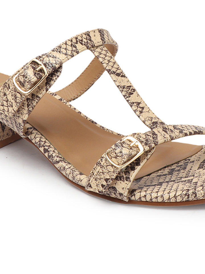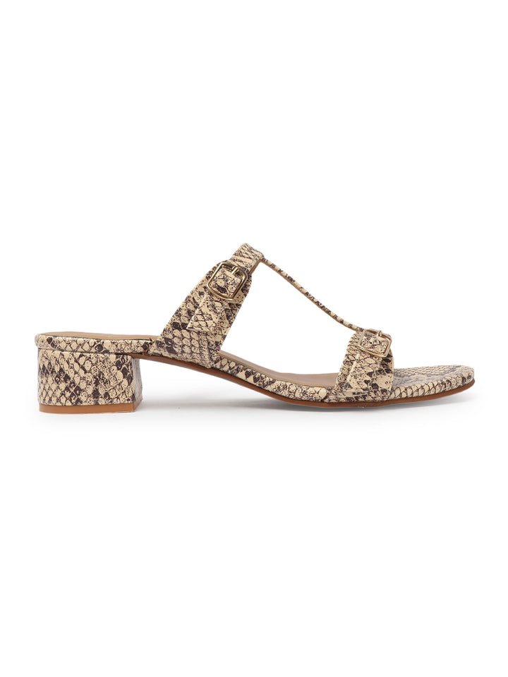 Women's Snakeskin Print Double Buckle Block Heel Sandals