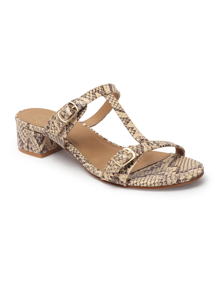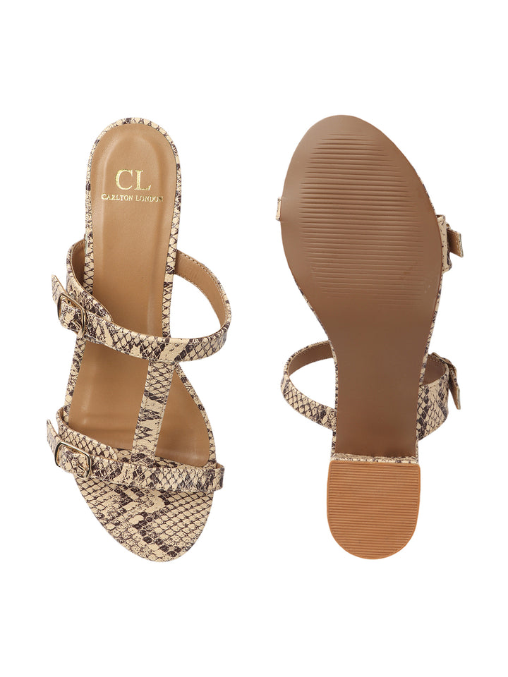 Carton London Women's Snakeskin Print Double Buckle Block Heel Sandals