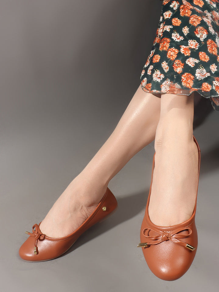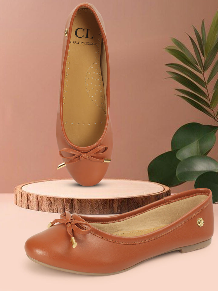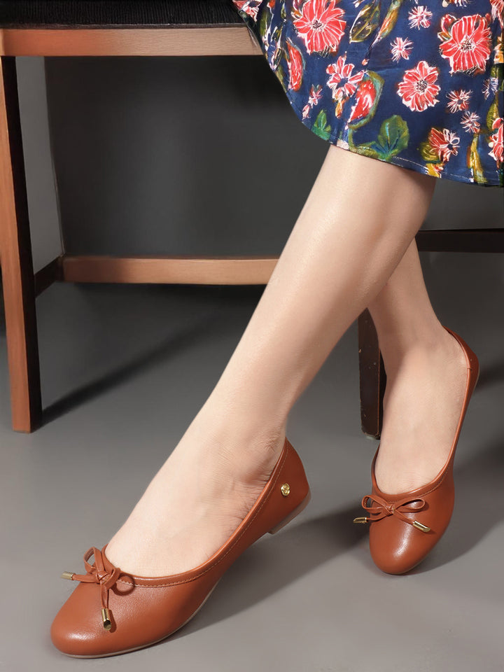 Carlton London Women's Solid Ballerinas with Bows Flats