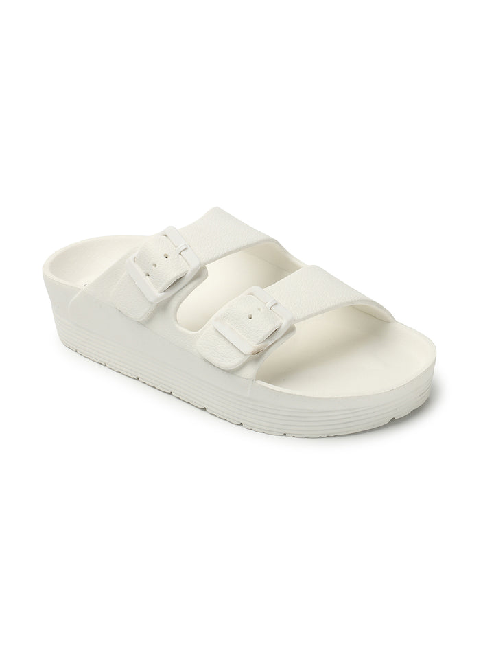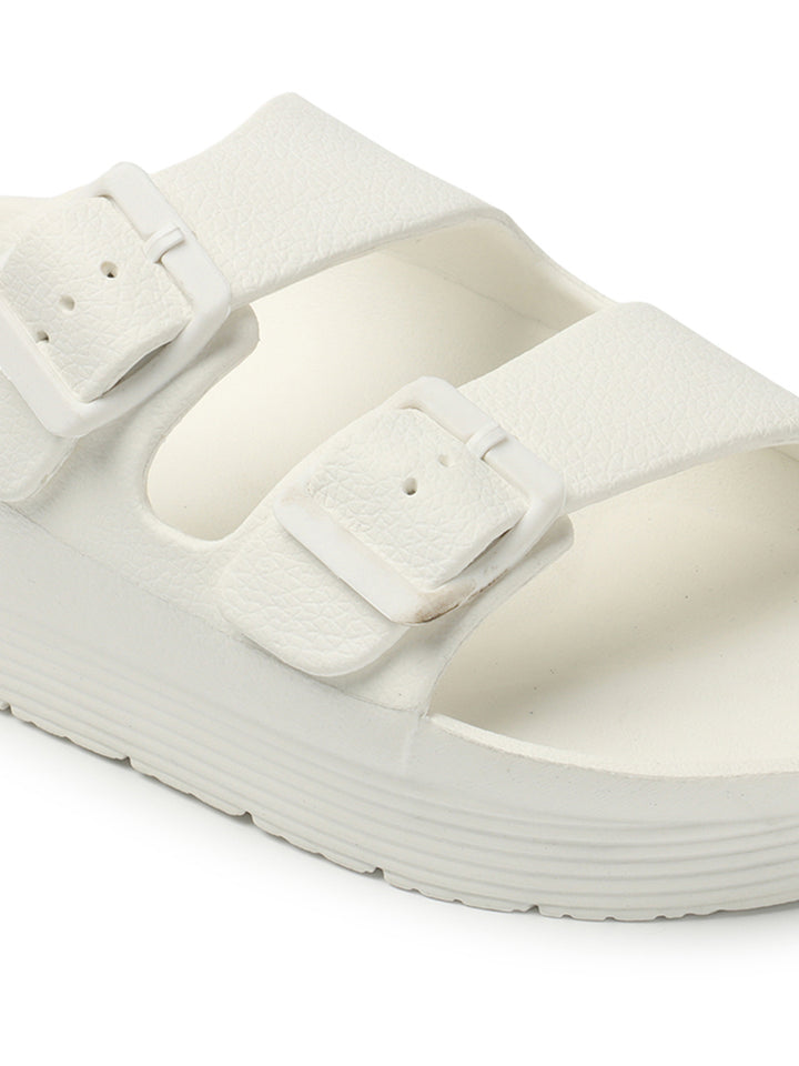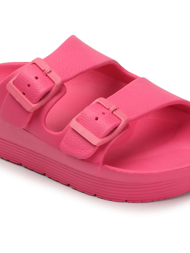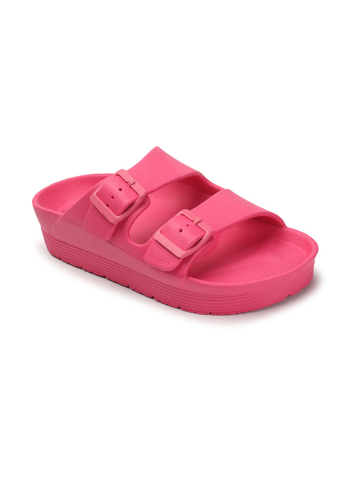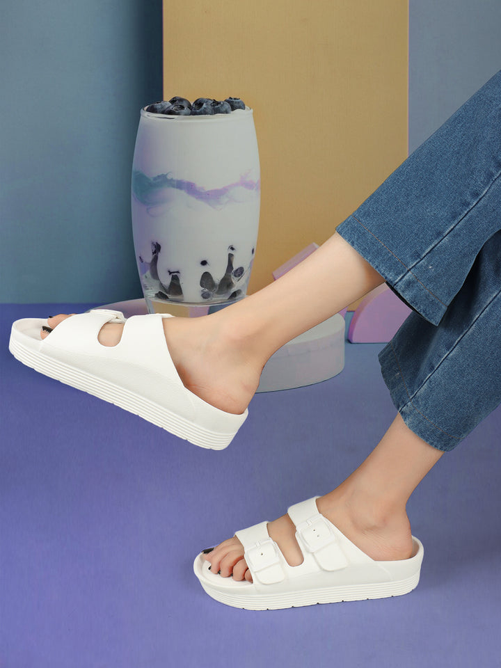 Step into sparkling style and comfort with these Women's Solid Double Buckle Platform Slides Women's Designed for a fashionable yet relaxed look, these footwear The comfortable Perfect for warm weather, these versatile are ideal for casual outings, special events, or simply adding a touch to your everyday look.