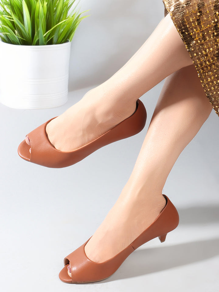 Carlton London Women's Solid Peep Toe Kitten Heel Pumps