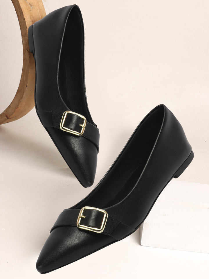 Carlton London Women's Solid Pointed Toe Ballerinas