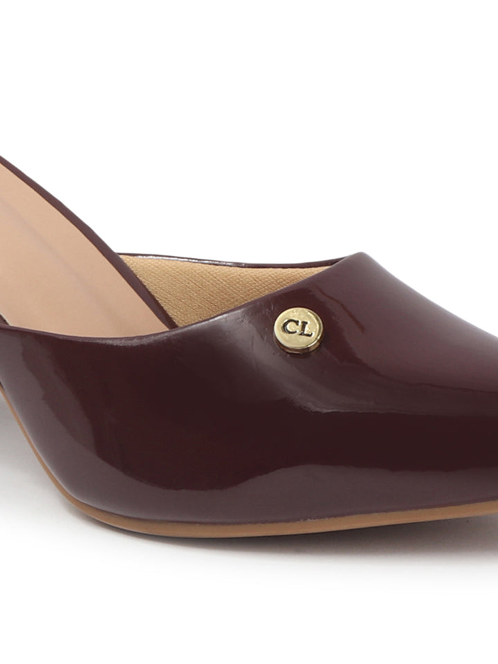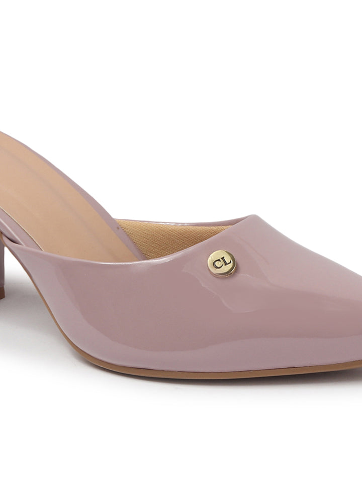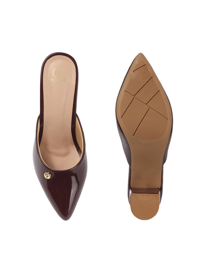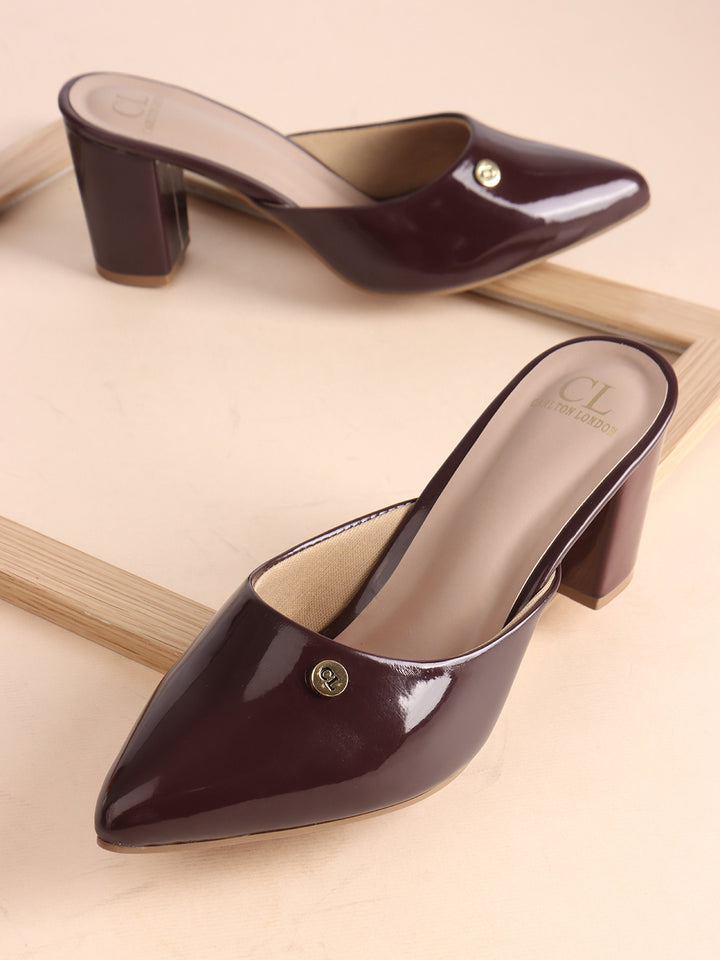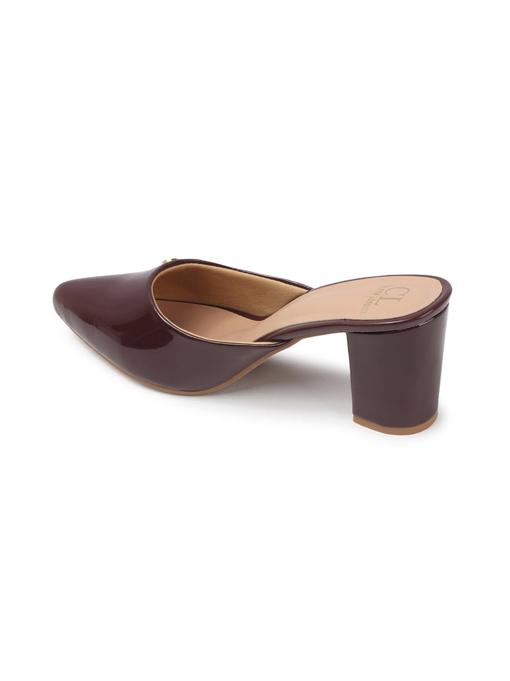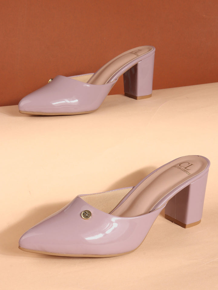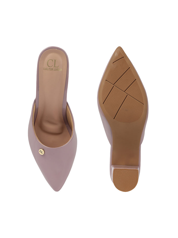 Carlton London Women's Solid Pointed Toe Block Heel Mules