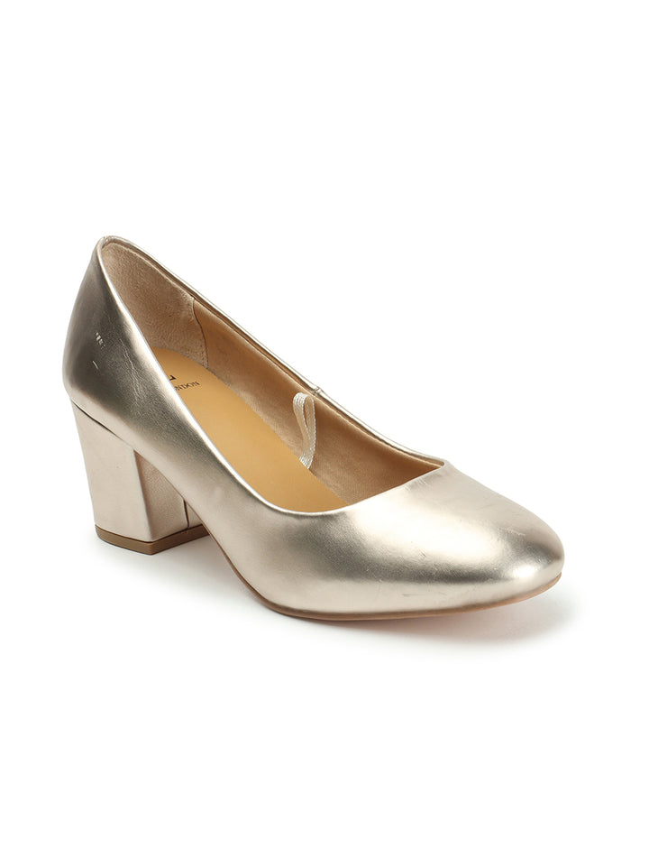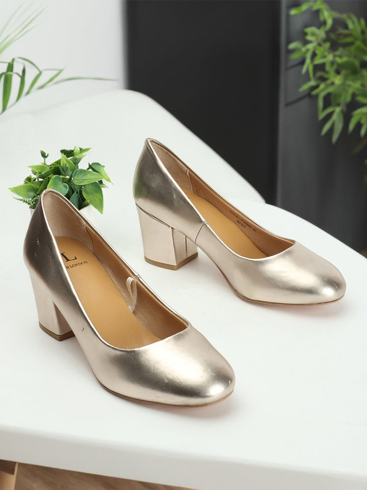 Carlton London Women's Solid Round Toe Block Heel Pumps