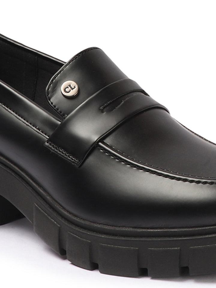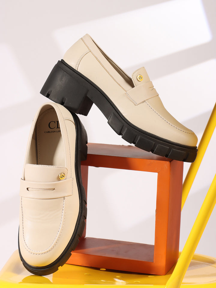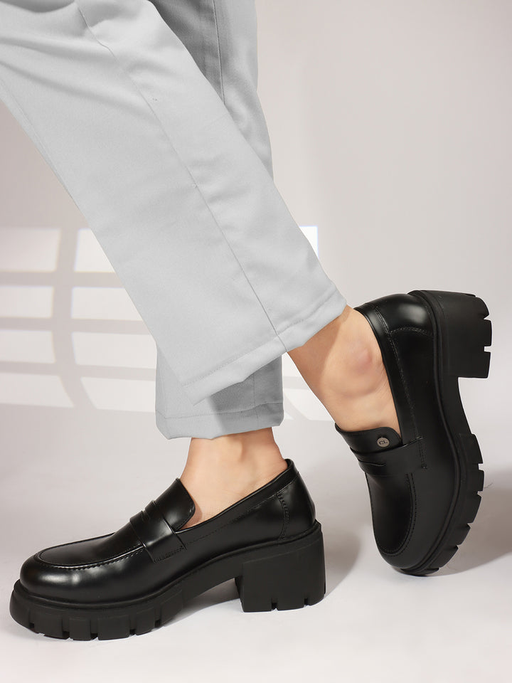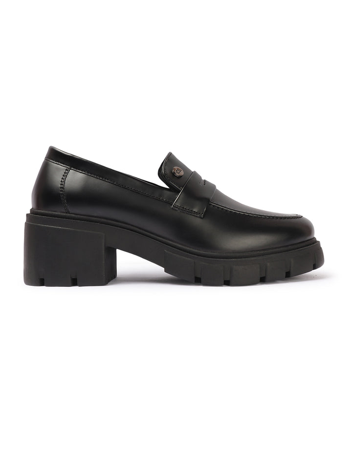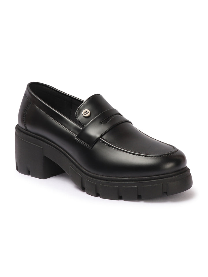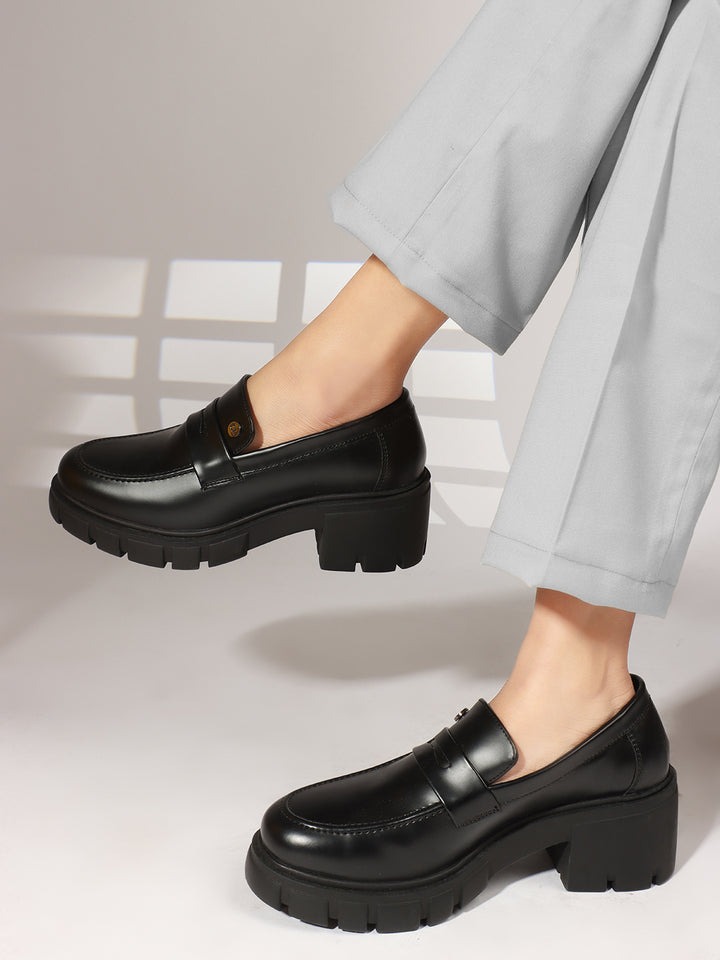 Carlton London Women's Solid Slip-On Chunky Heel Loafers