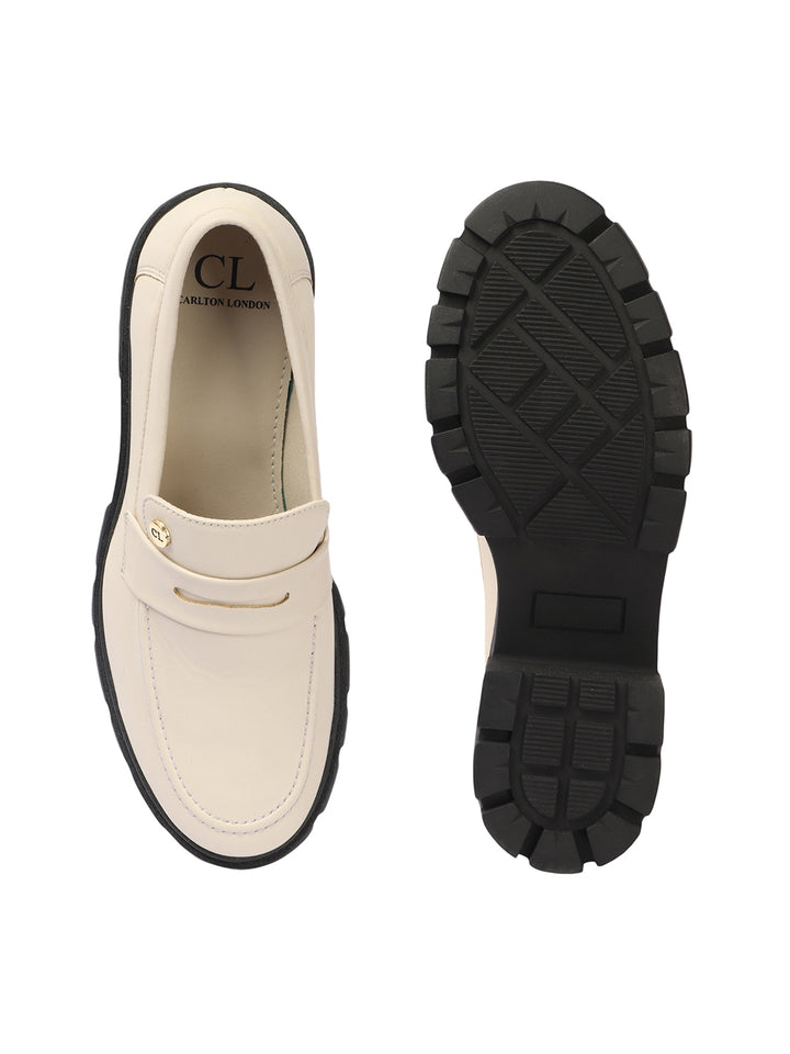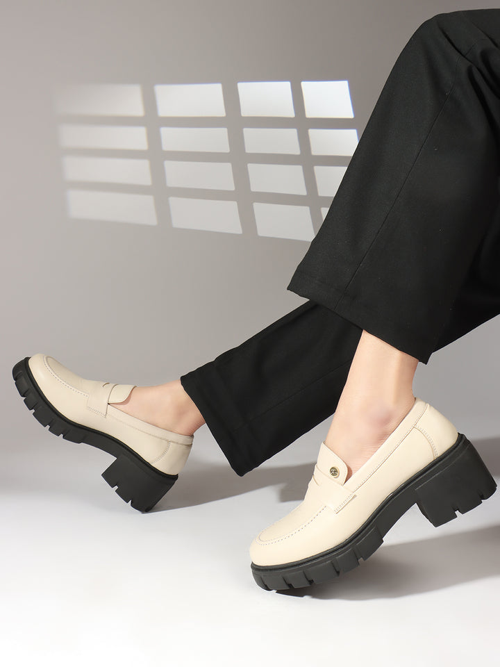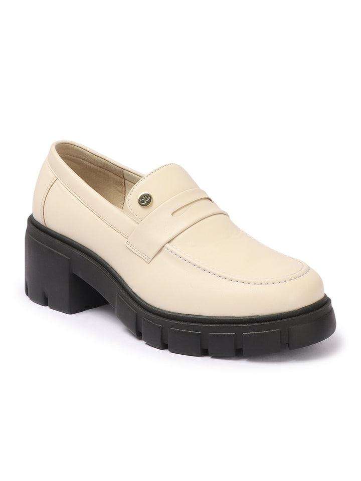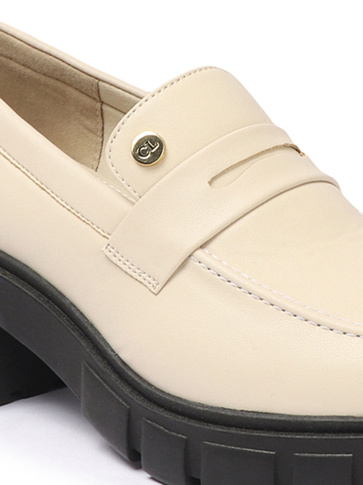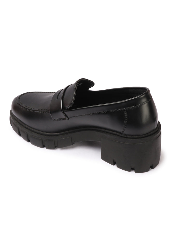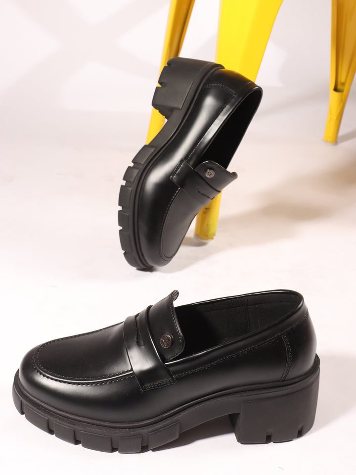 Carlton London Women's Solid Slip-On Chunky Heel Loafers