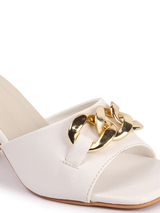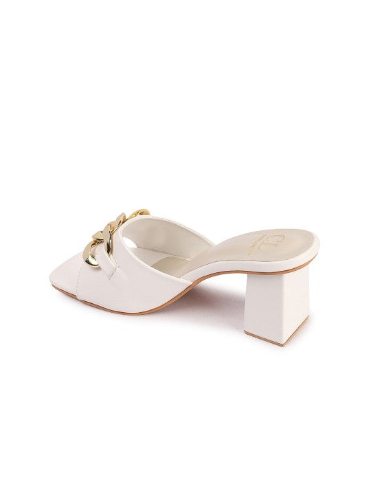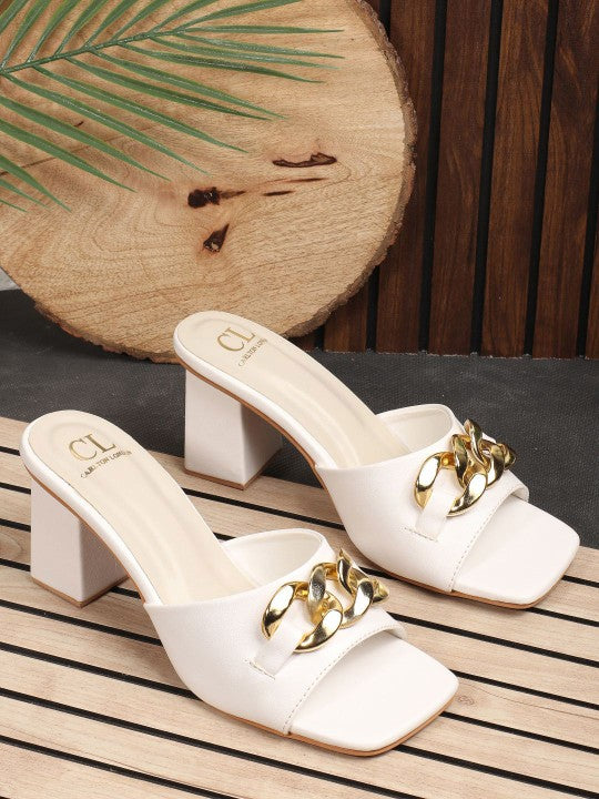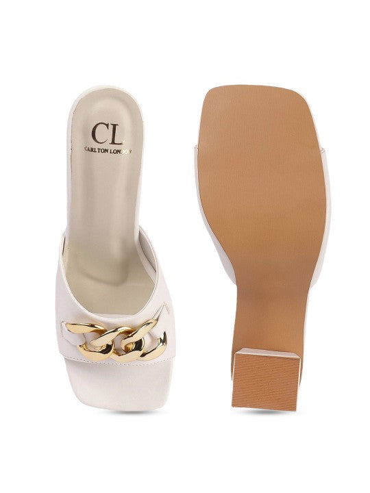 Carlton London Women's Square Toe Chain Detail Block Heel Sandal