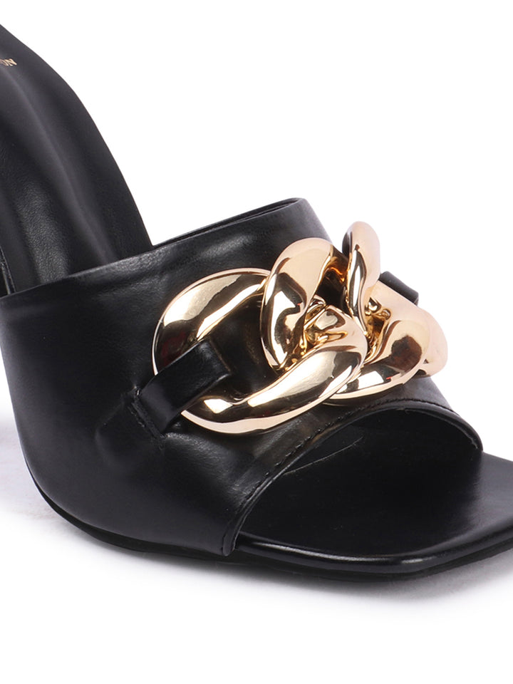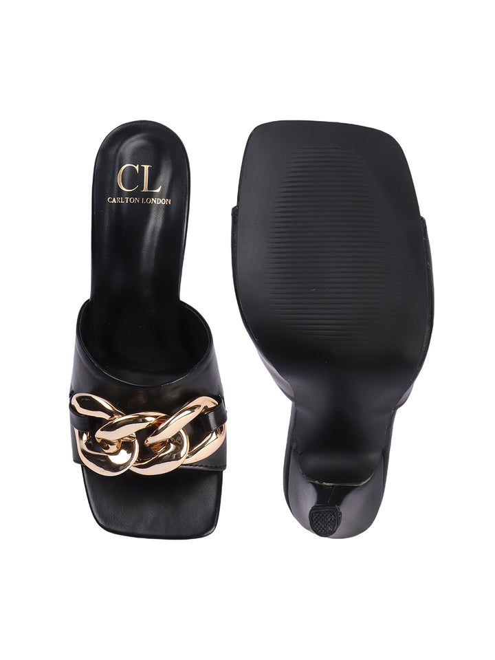 Carlton London Women's Square Toe Chain Detail Stiletto Sandal