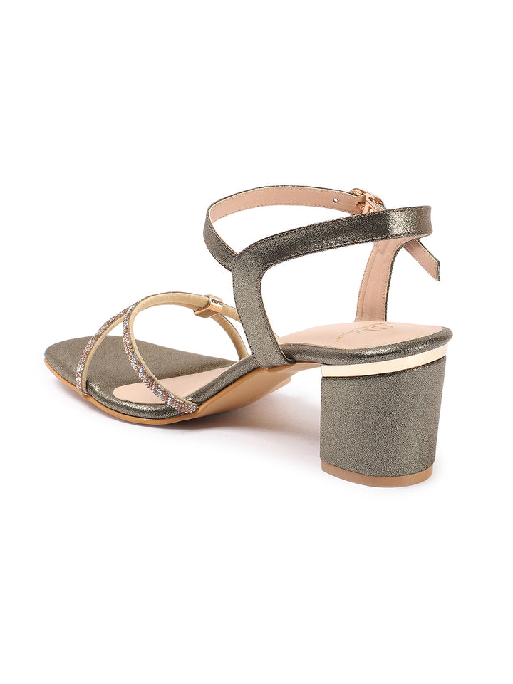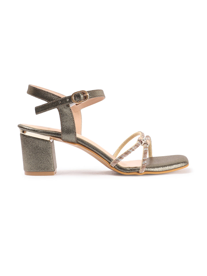 Carlton London Women's Square Toe Embellished Ankle Strap Block Heel Sandals