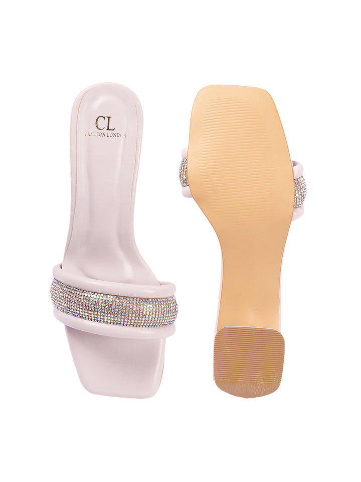 Carlton London Women's Square Toe Embellished Block Heel Sandal