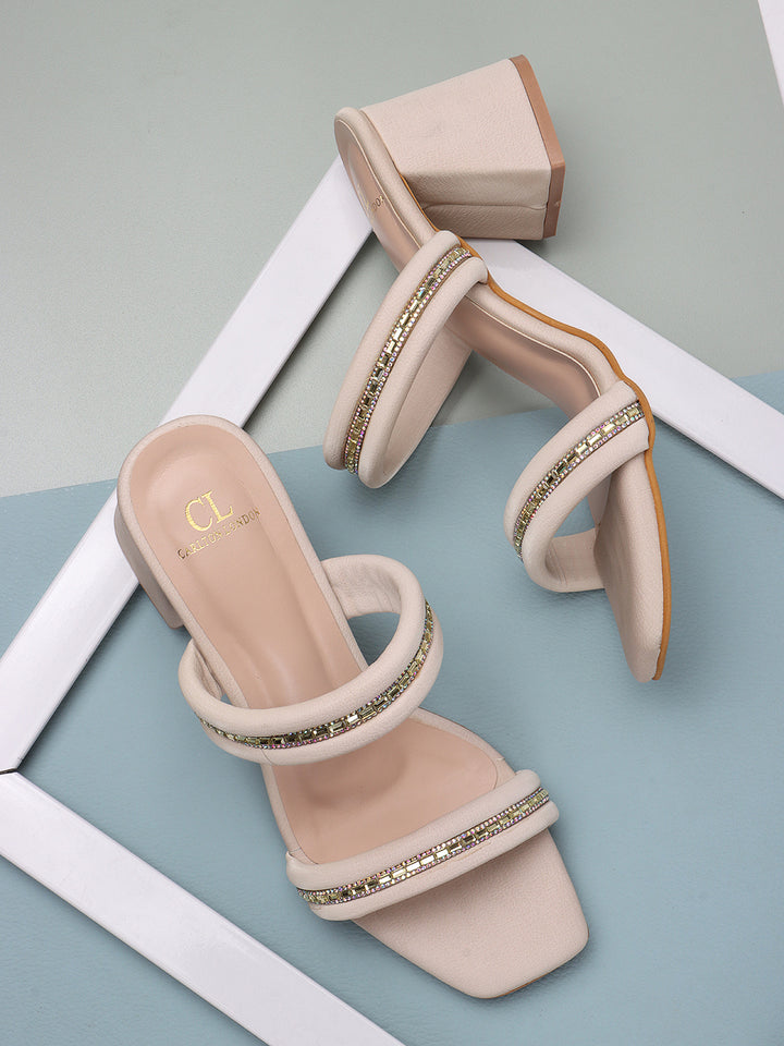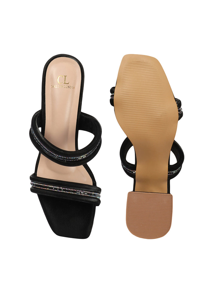 Carlton London Women's Square Toe Embellished Double Strap Block Heel Sandal