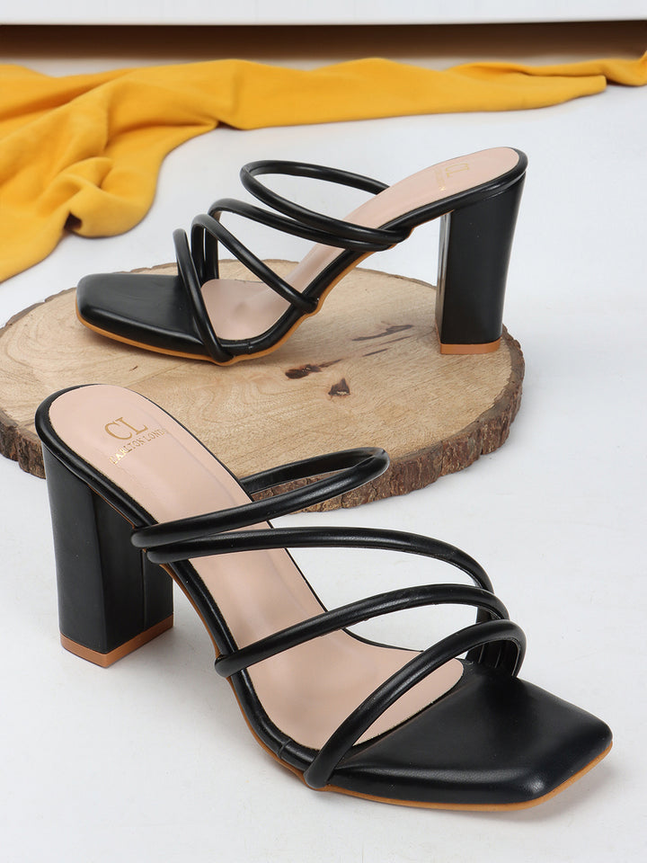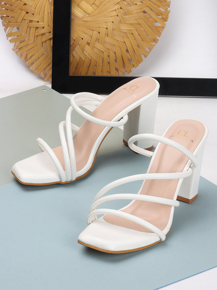 Carlton London Women's Square Toe Multi Strap Block Heel Sandals