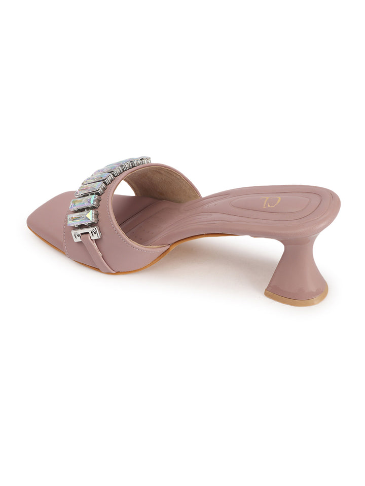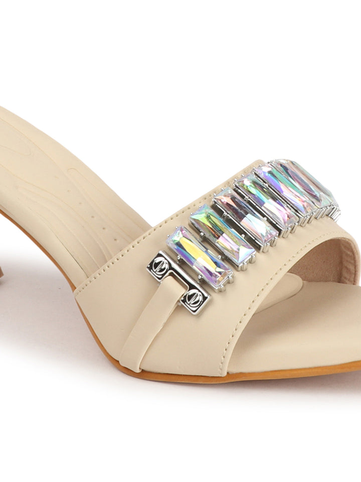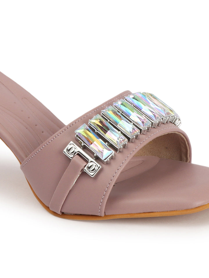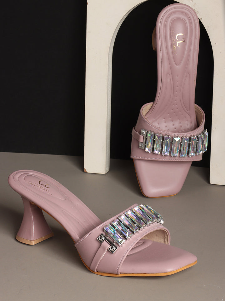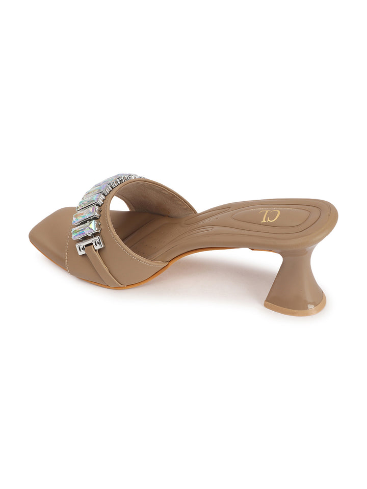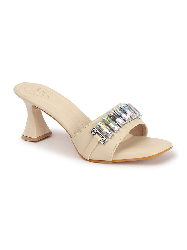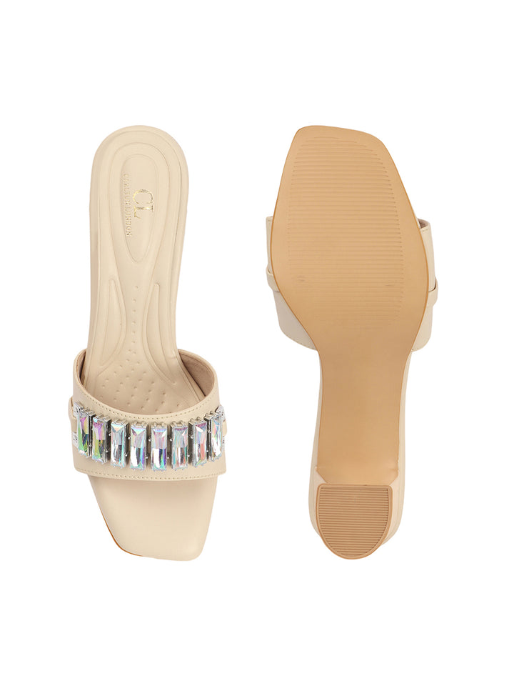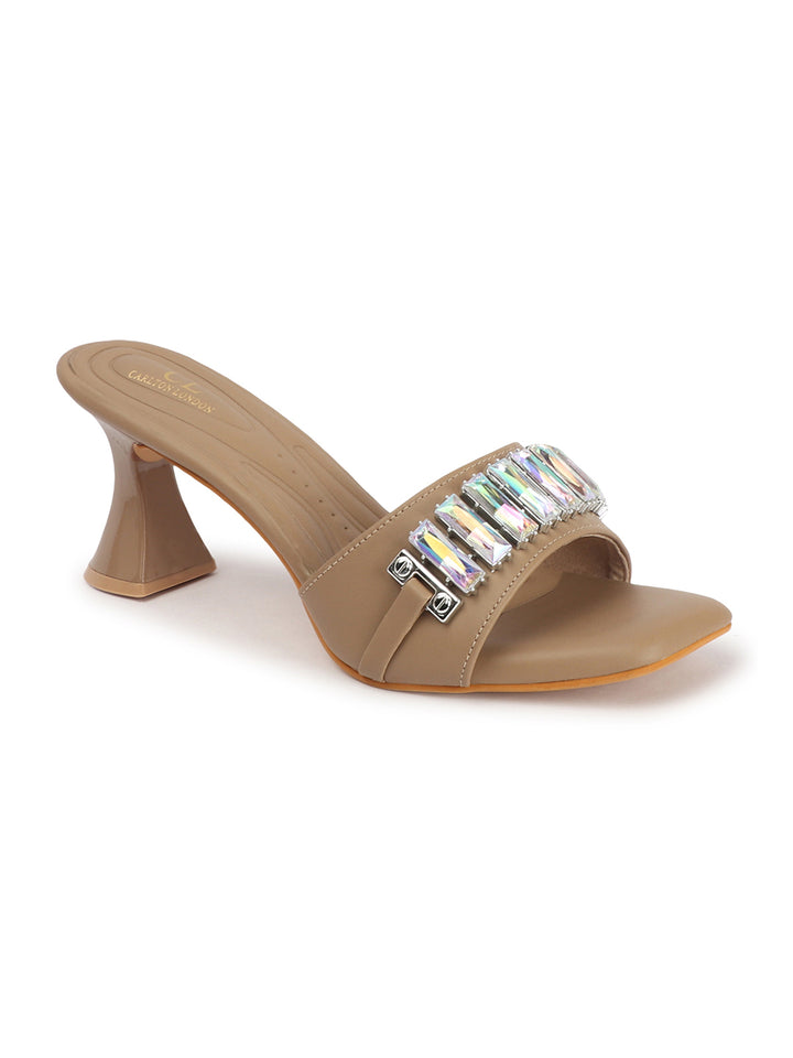Carlton London Women's Square Toe Sculpted Heel Sandals with Embellished Straps
