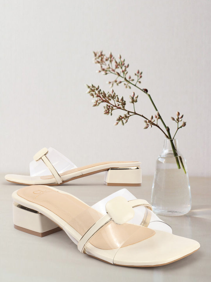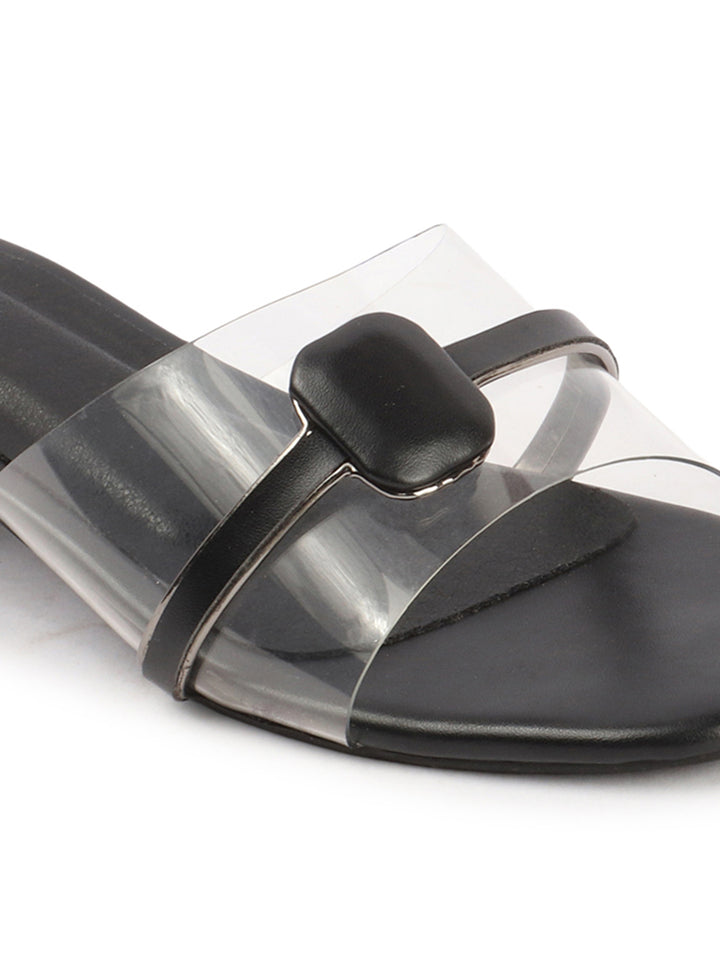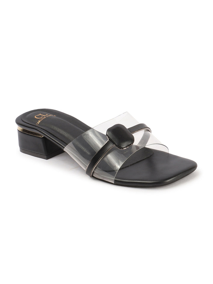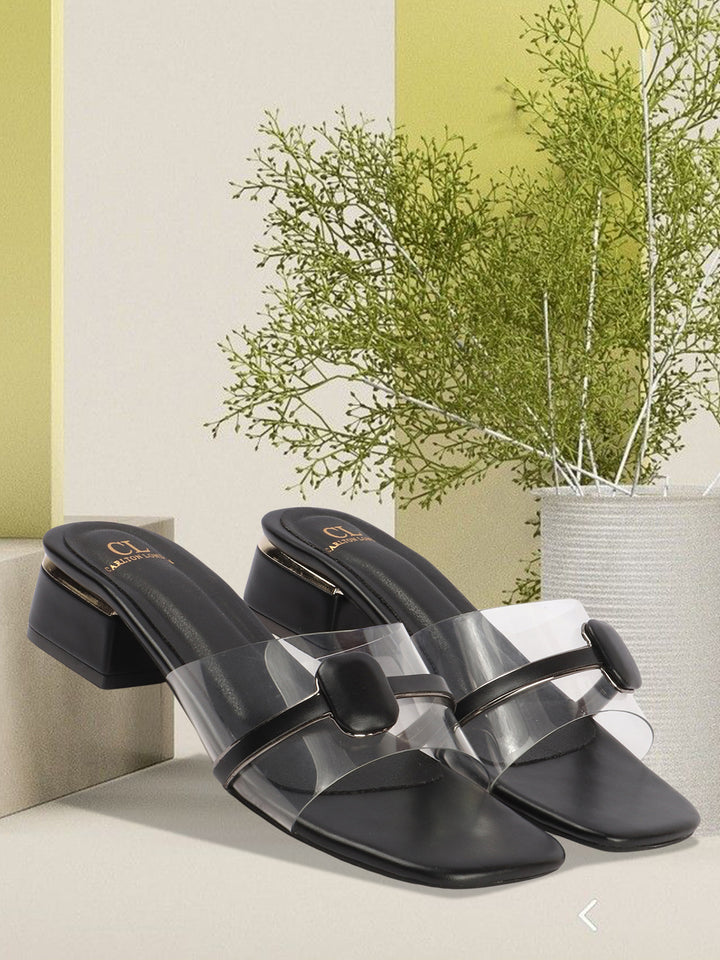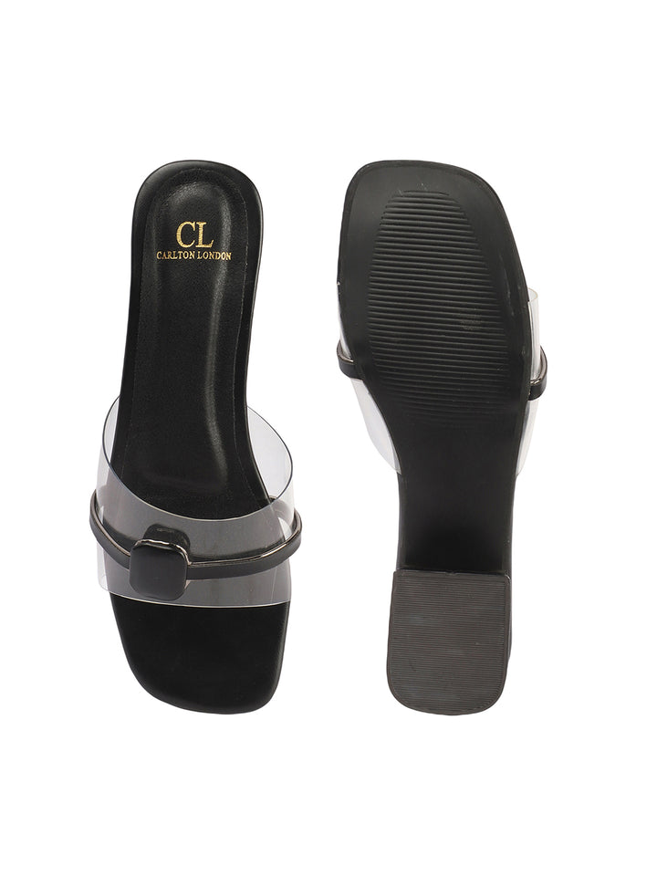 Carton London Women's Square Toe Slip On Black Sandal Heels