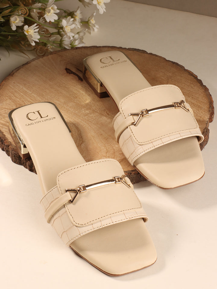 Carlton London Women's Square Toe Slip-On Sandal with Buckle Detail