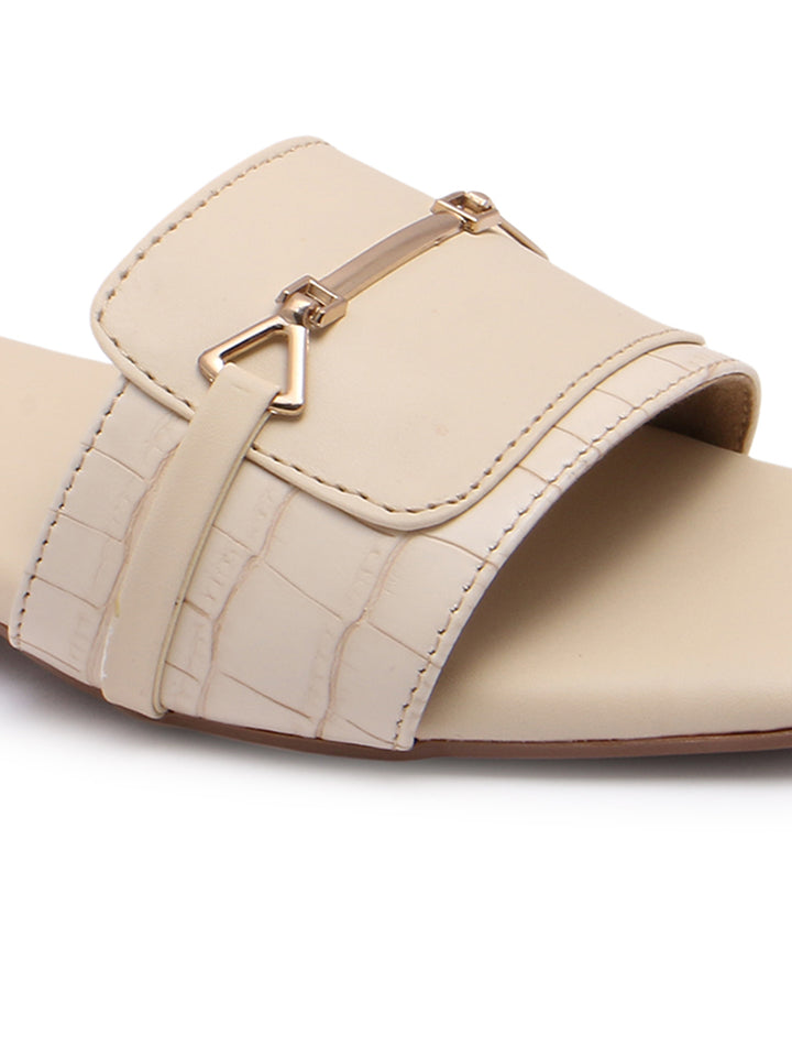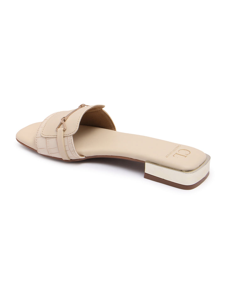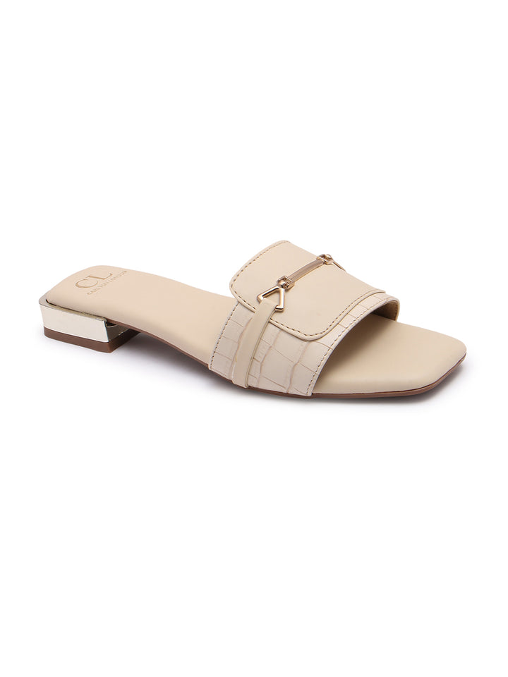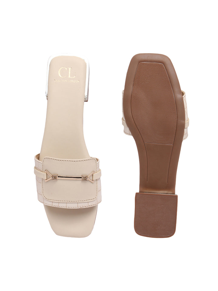Women's Square Toe Slip-On Sandal with Buckle Detail