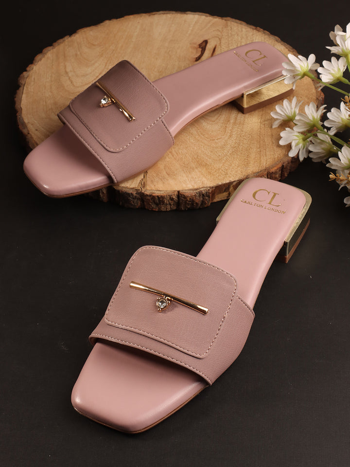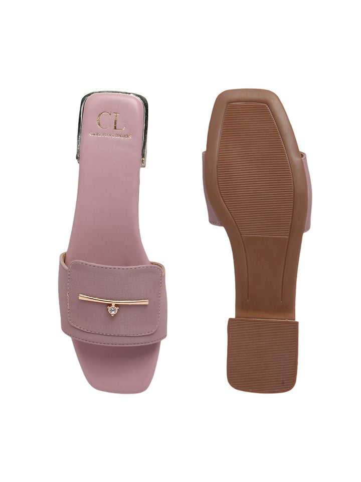 Carlton London Women's Square Toe Slip-On Sandal with Metal Detail