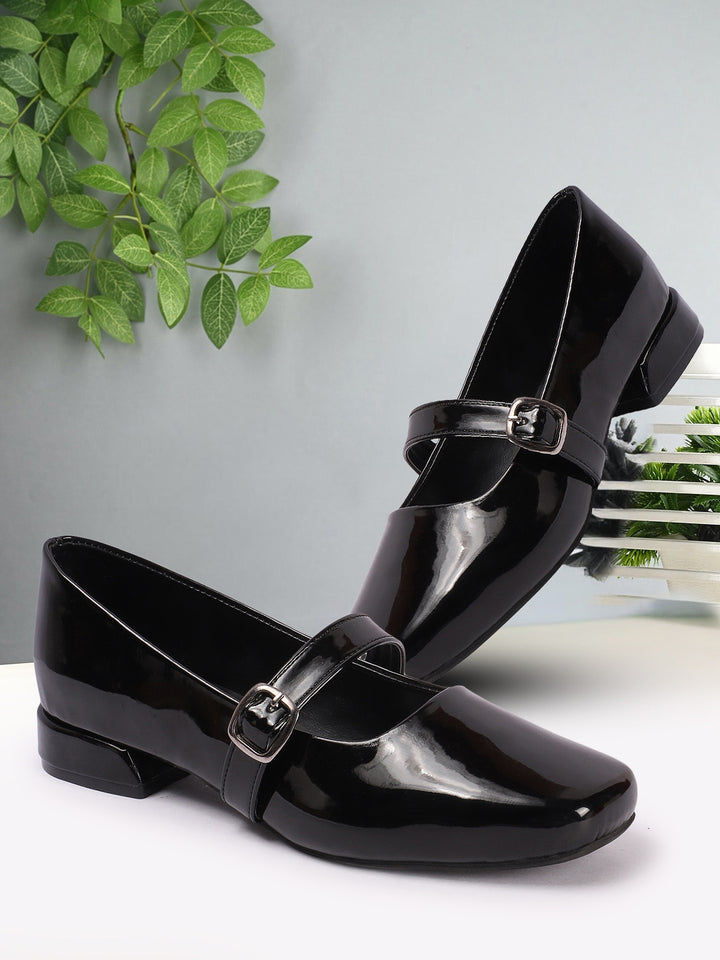 Carlton London Women's Squre Toe Block Heel Solid Mary Janes