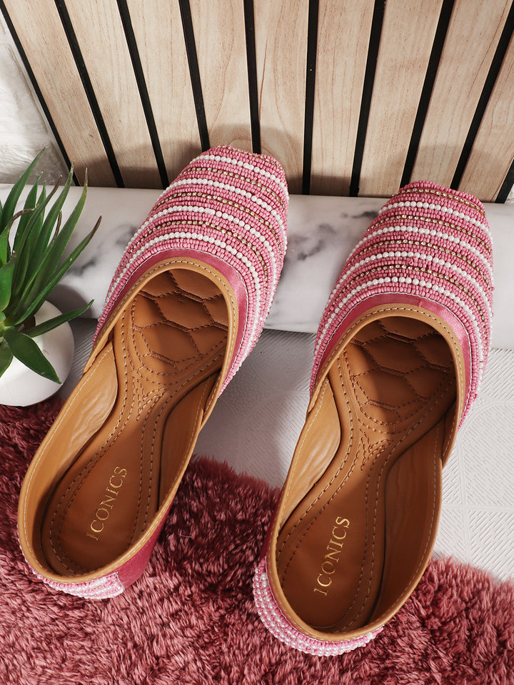 ICONICS Women's Striped Beaded Hand-Embellished Ethnic Mojaris