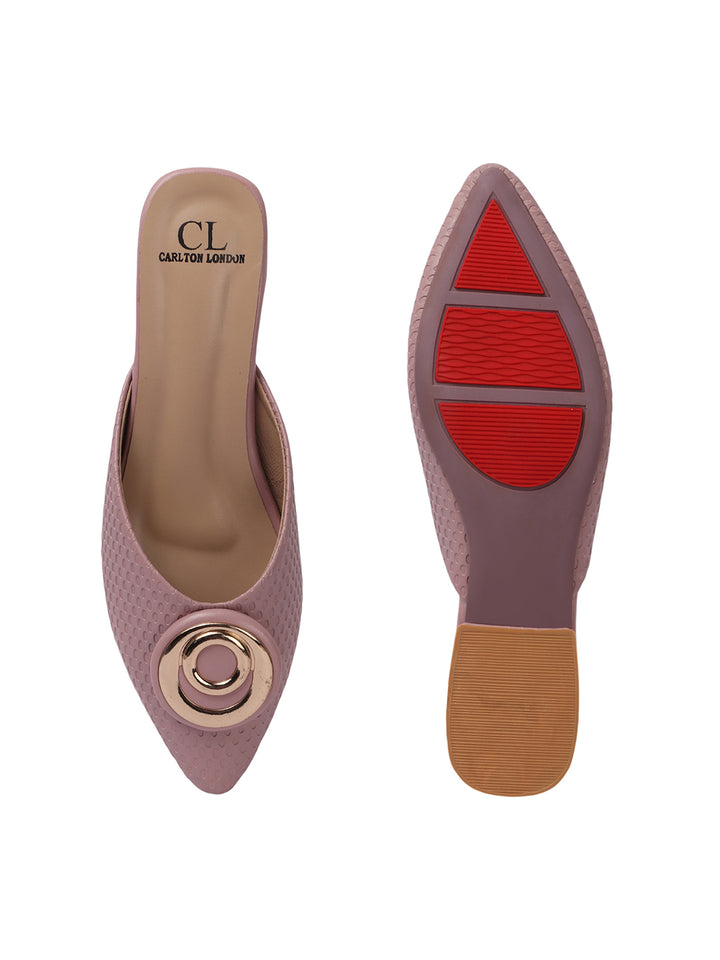 Carlton London Women's Textured Block Heel Mules with Circular Ornament