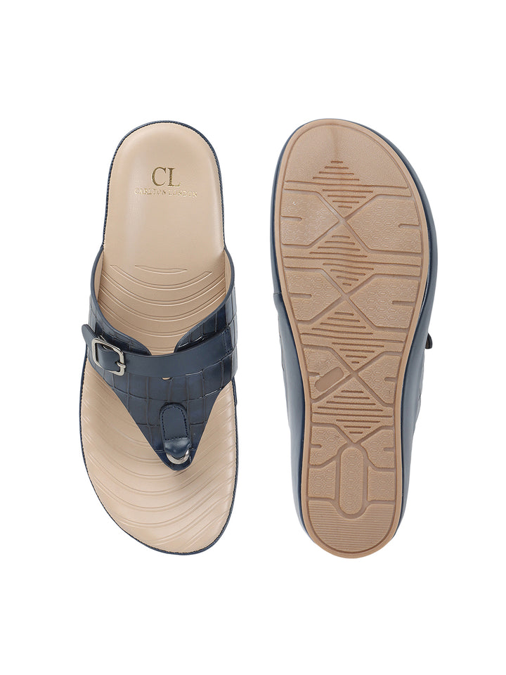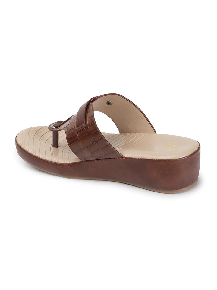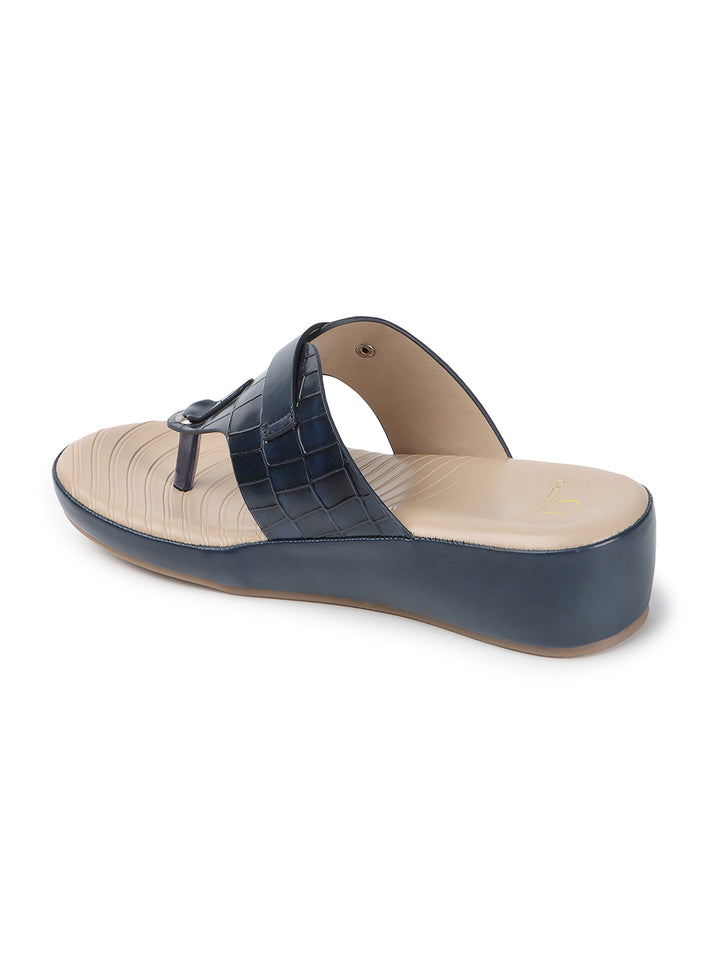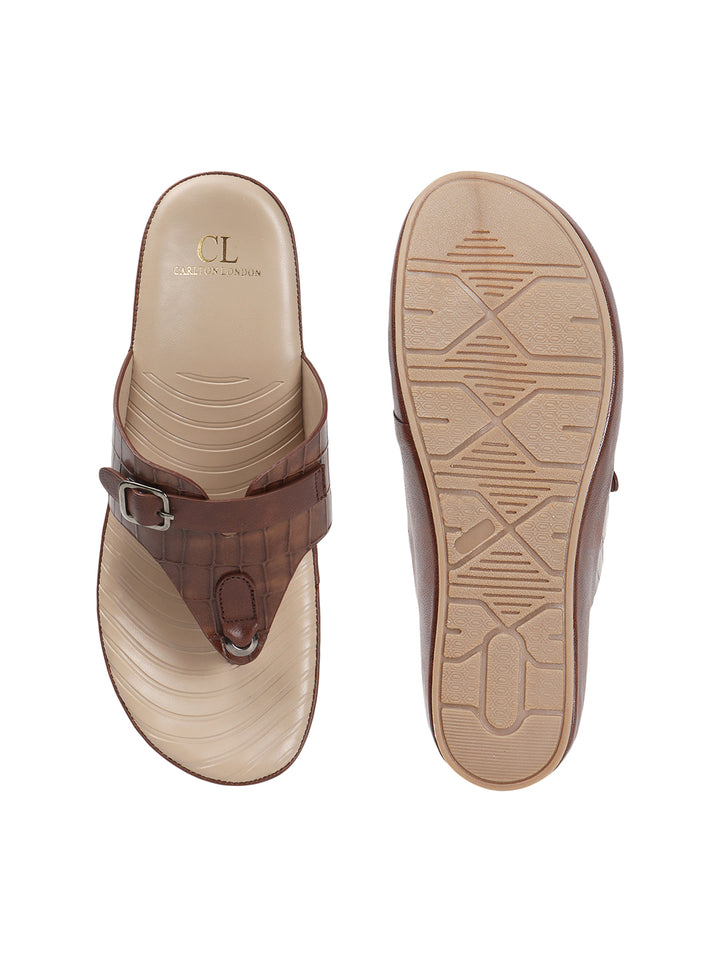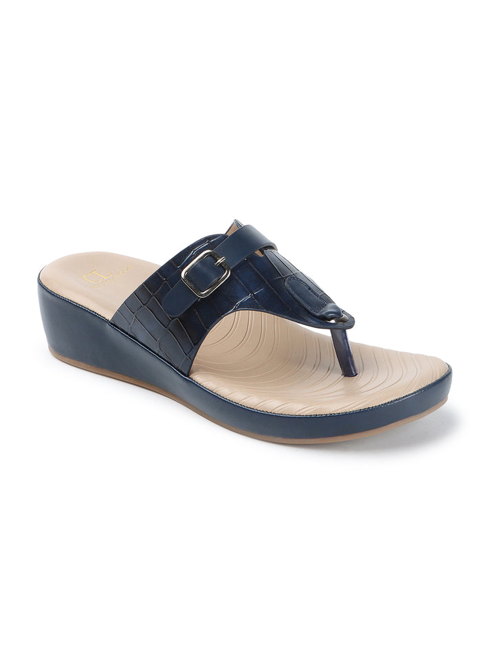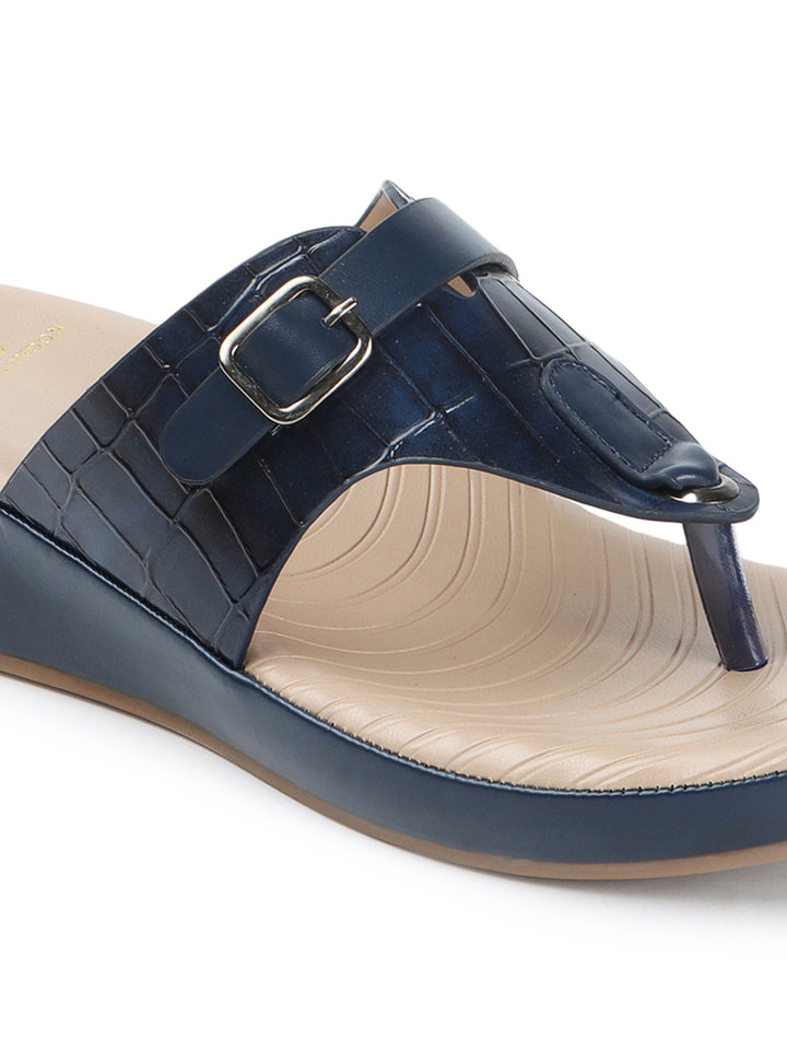 Carlton London Women's Textured Buckle Detail Thong Wedge Sandals