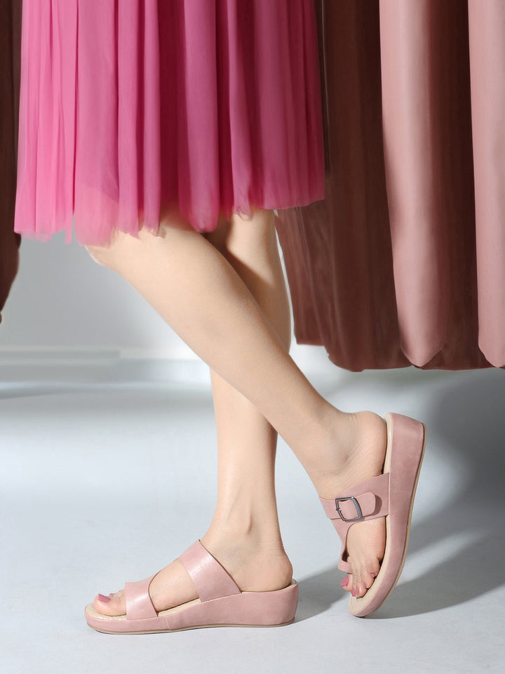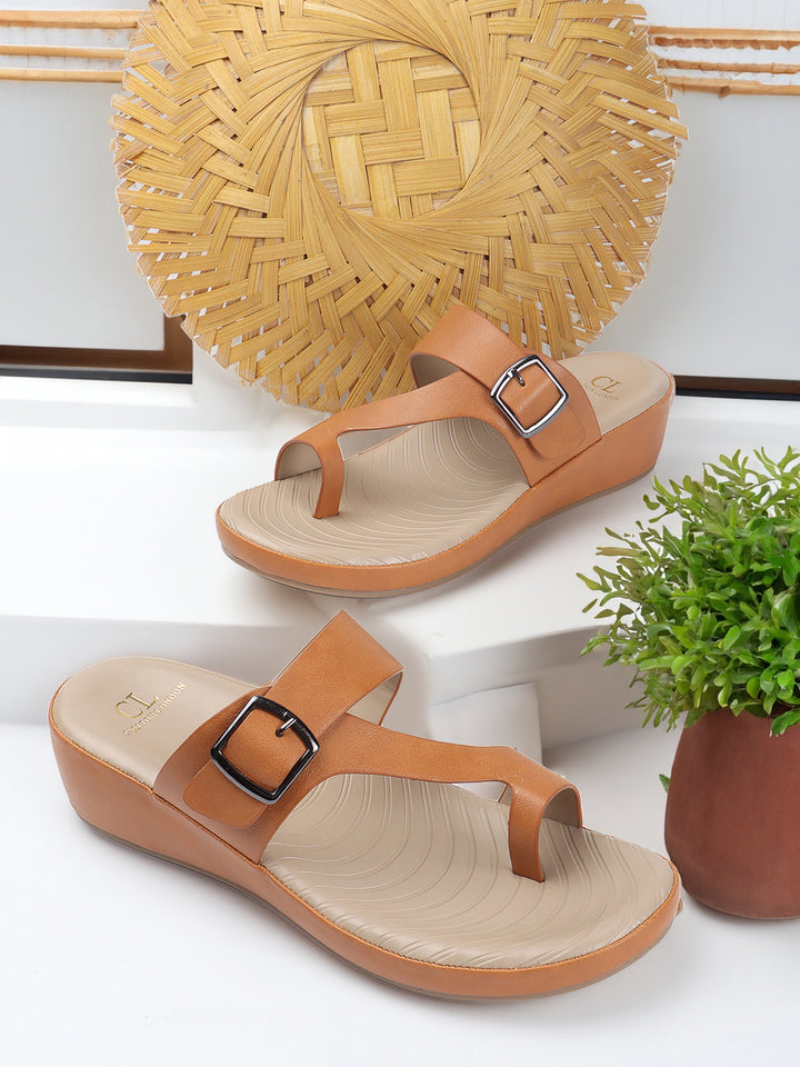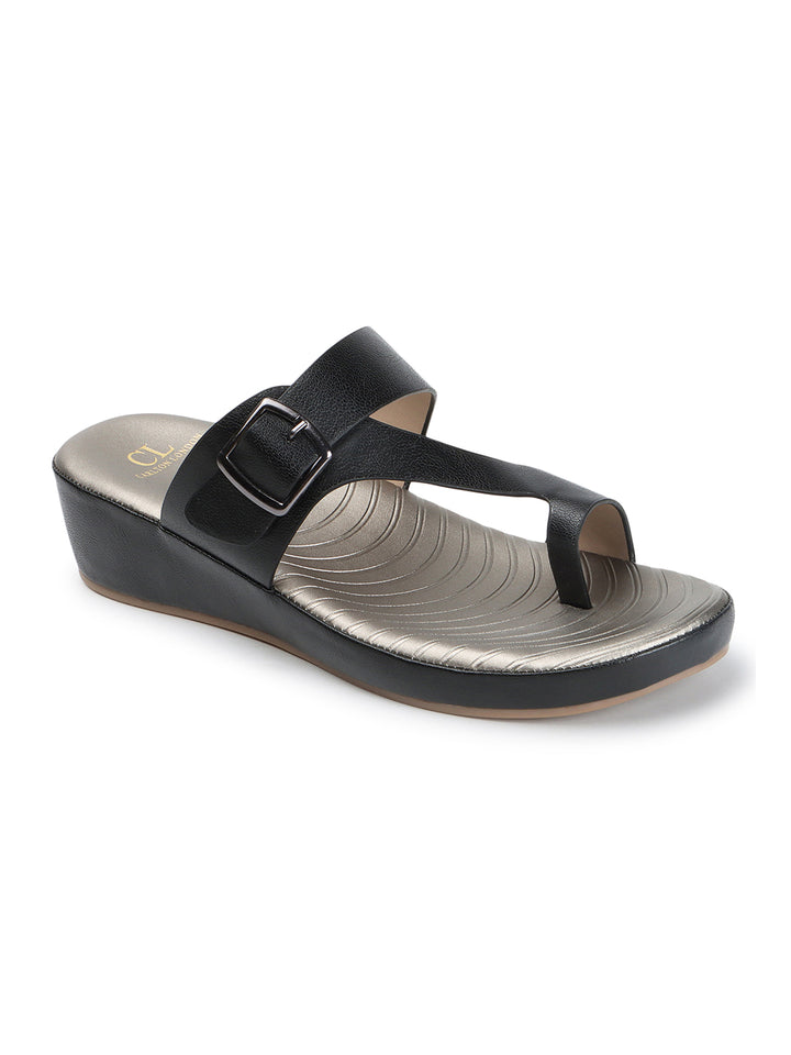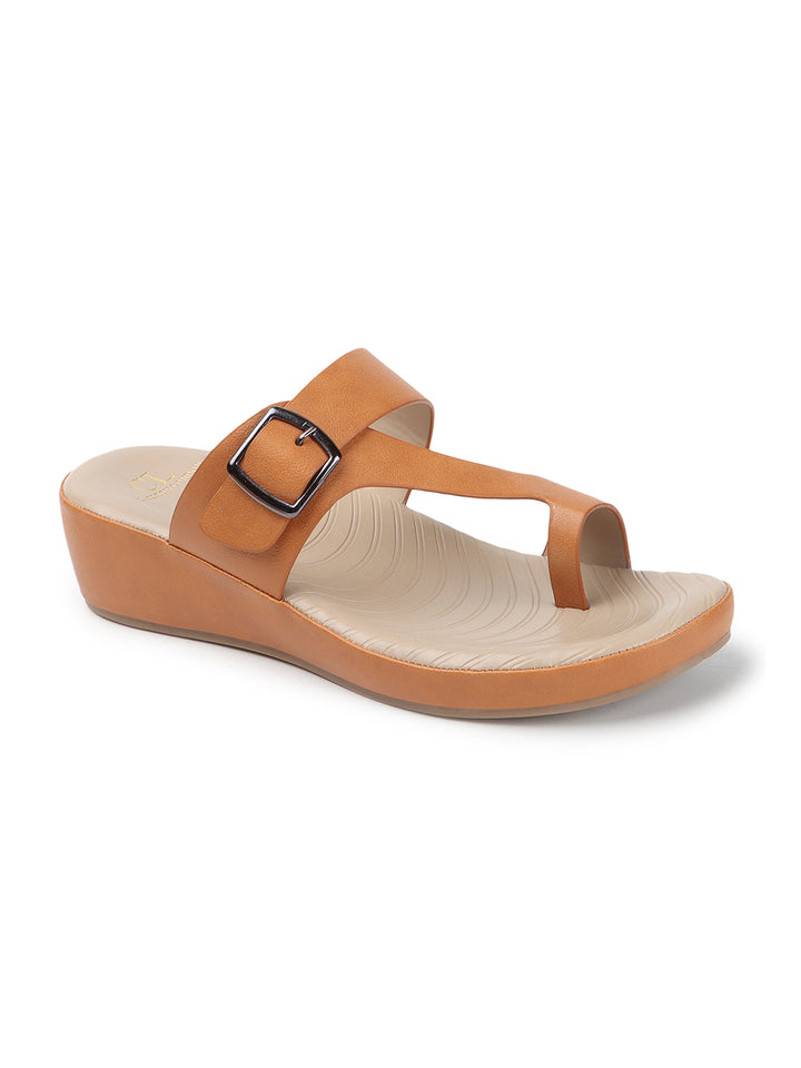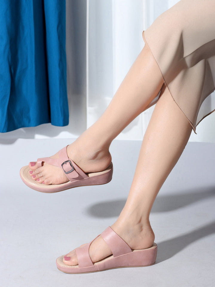 Women's Textured Buckle Detail Toe Ring Wedge Sandals