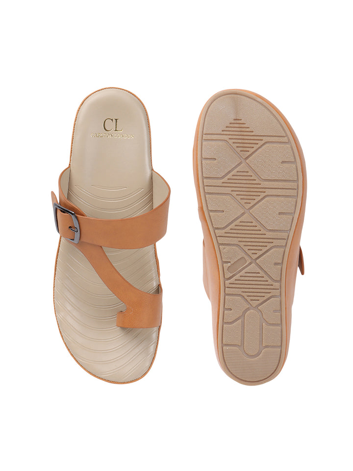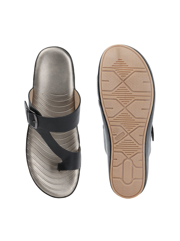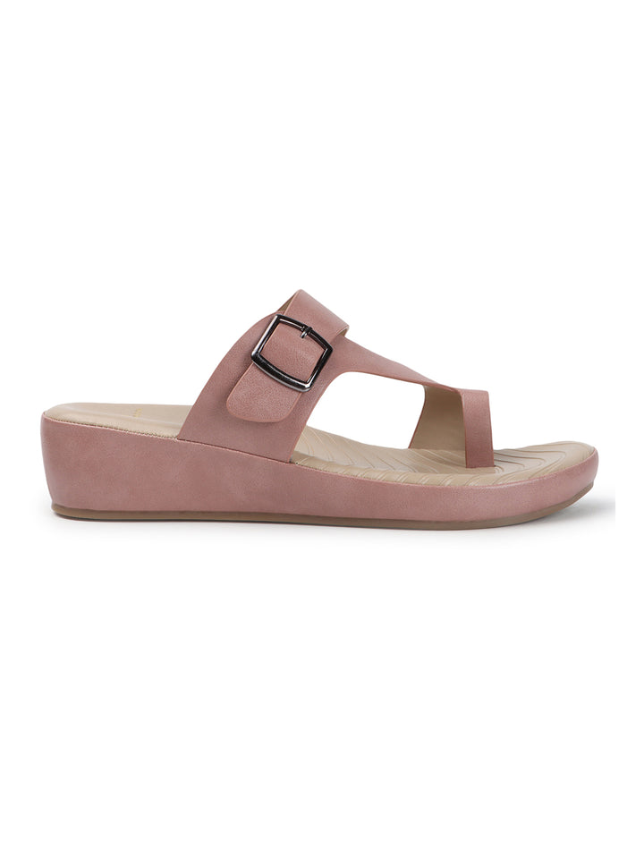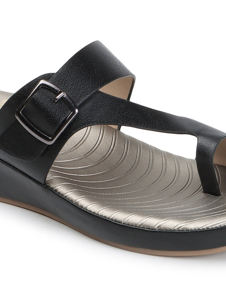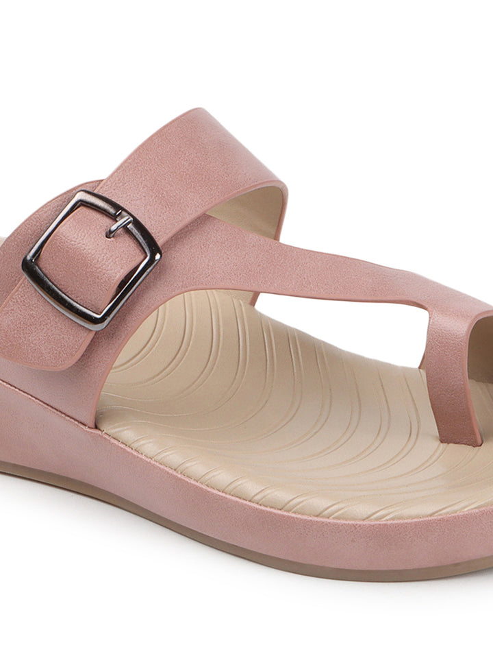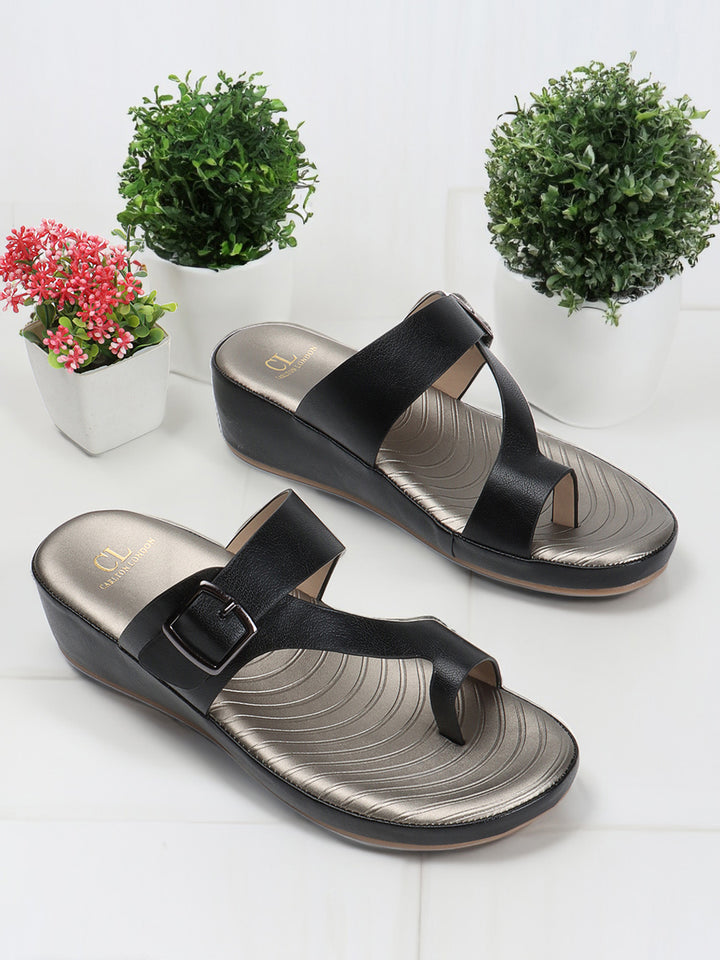 Women's Textured Buckle Detail Toe Ring Wedge Sandals