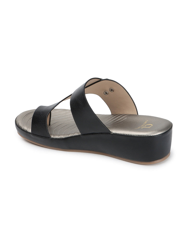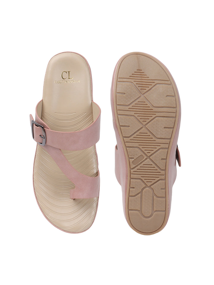 Carlton London Women's Textured Buckle Detail Toe Ring Wedge Sandals