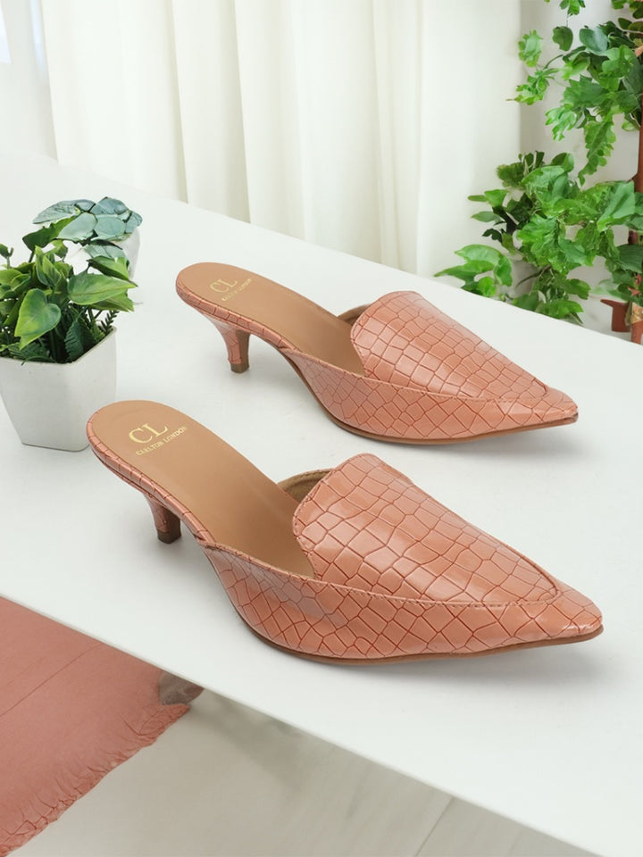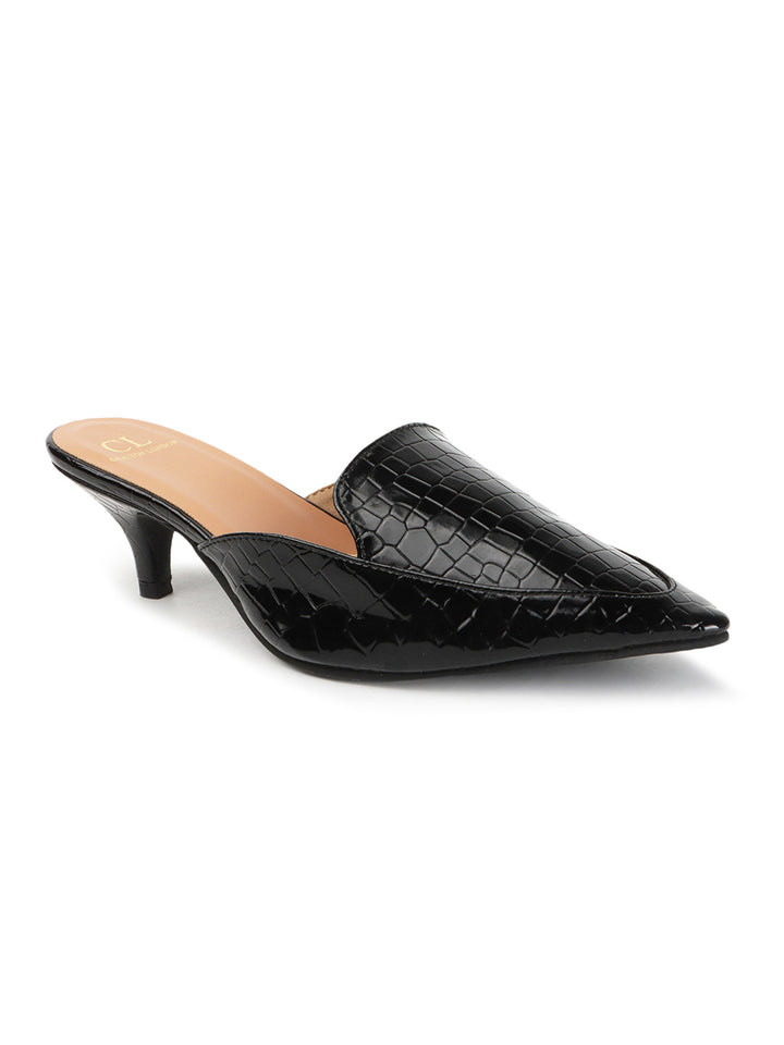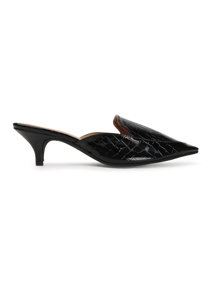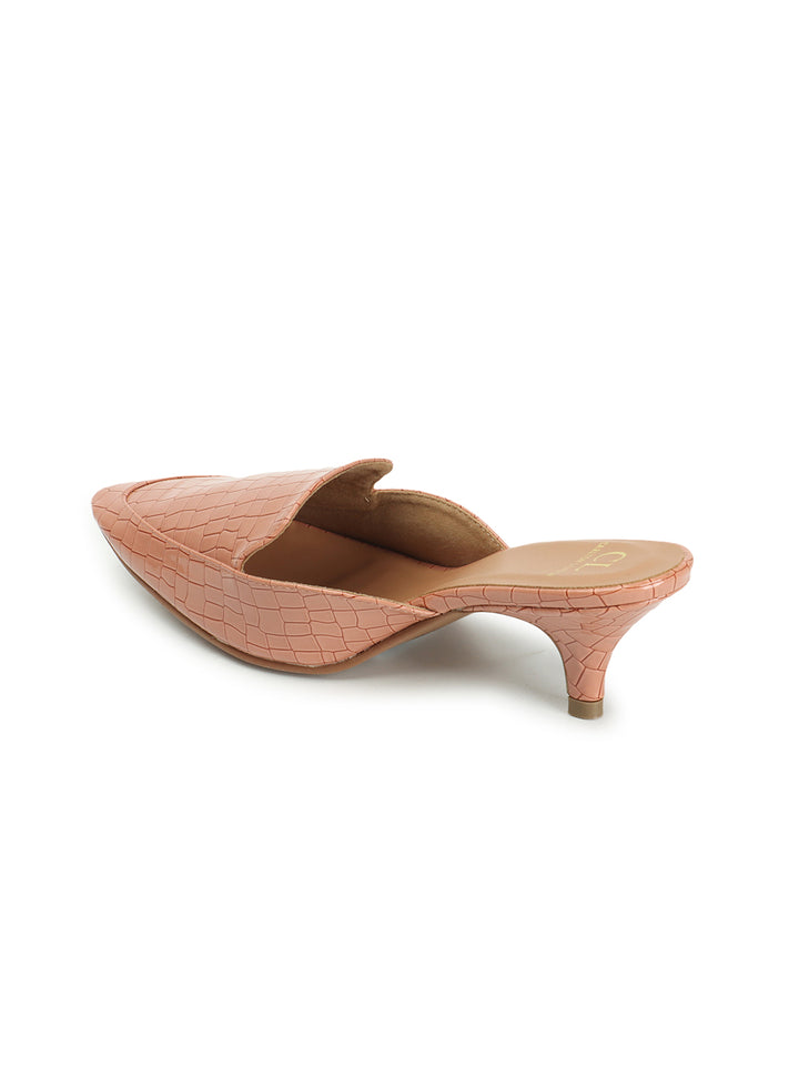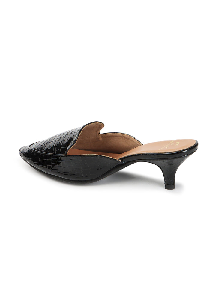 Women's Textured Pointed Toe Kitten Heel Mules
