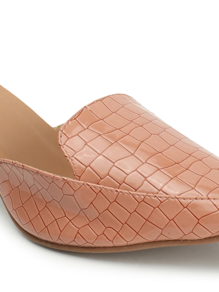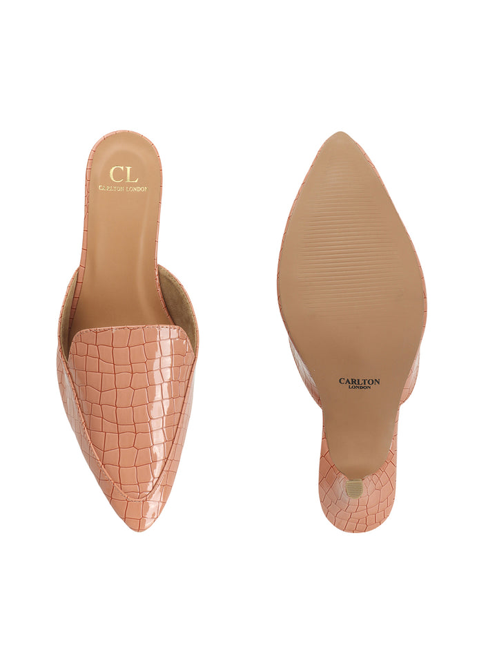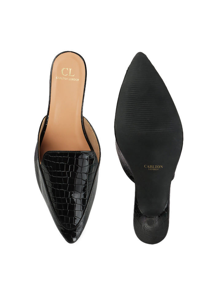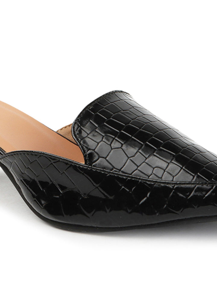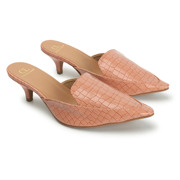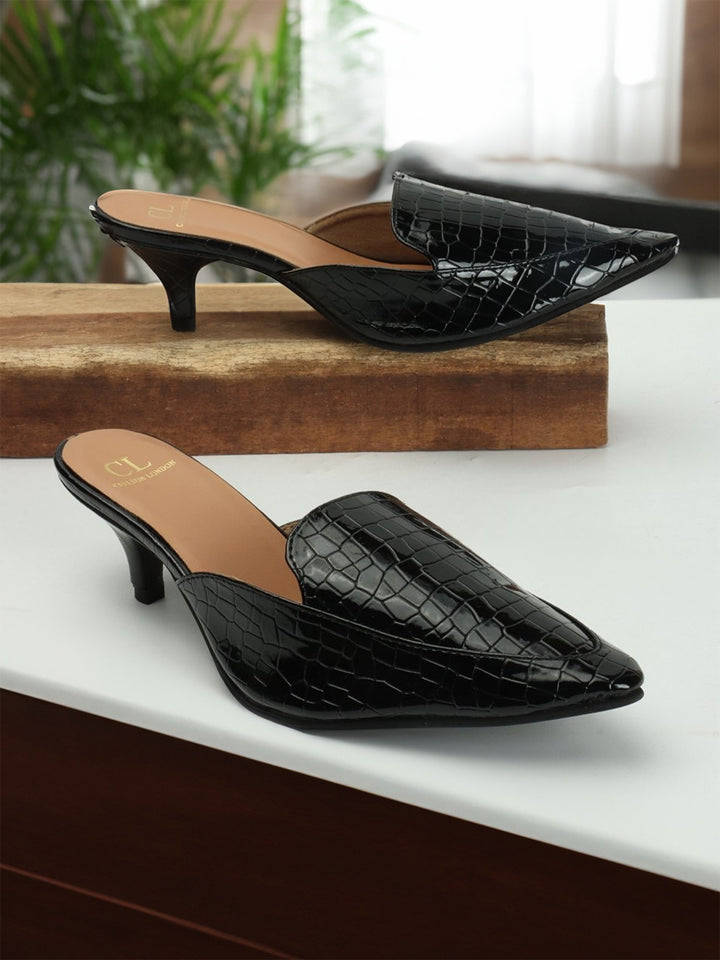 Women's Textured Pointed Toe Kitten Heel Mules