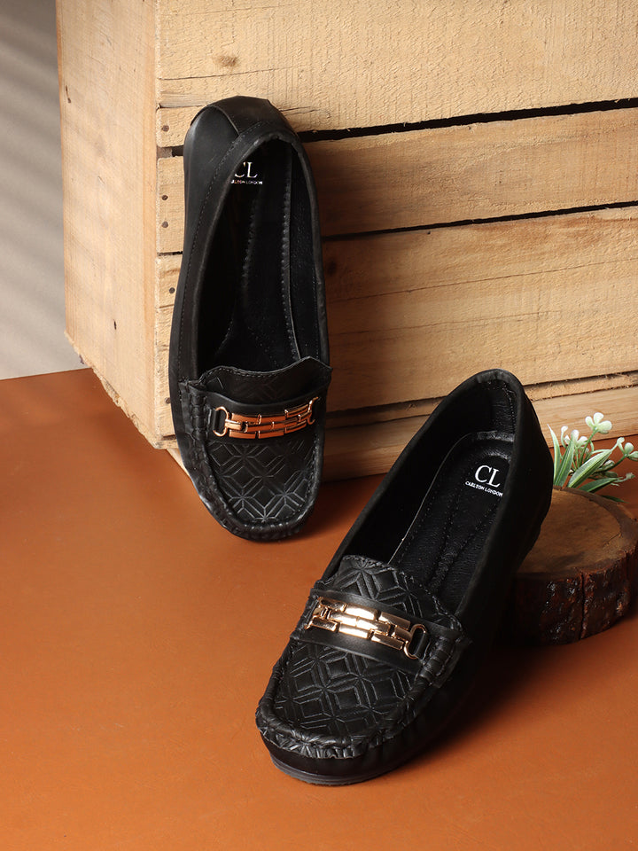 Carlton London Women's Textured Slip-On Loafers with Buckle