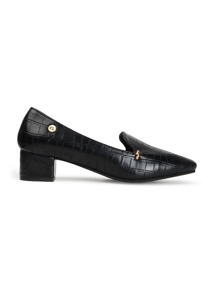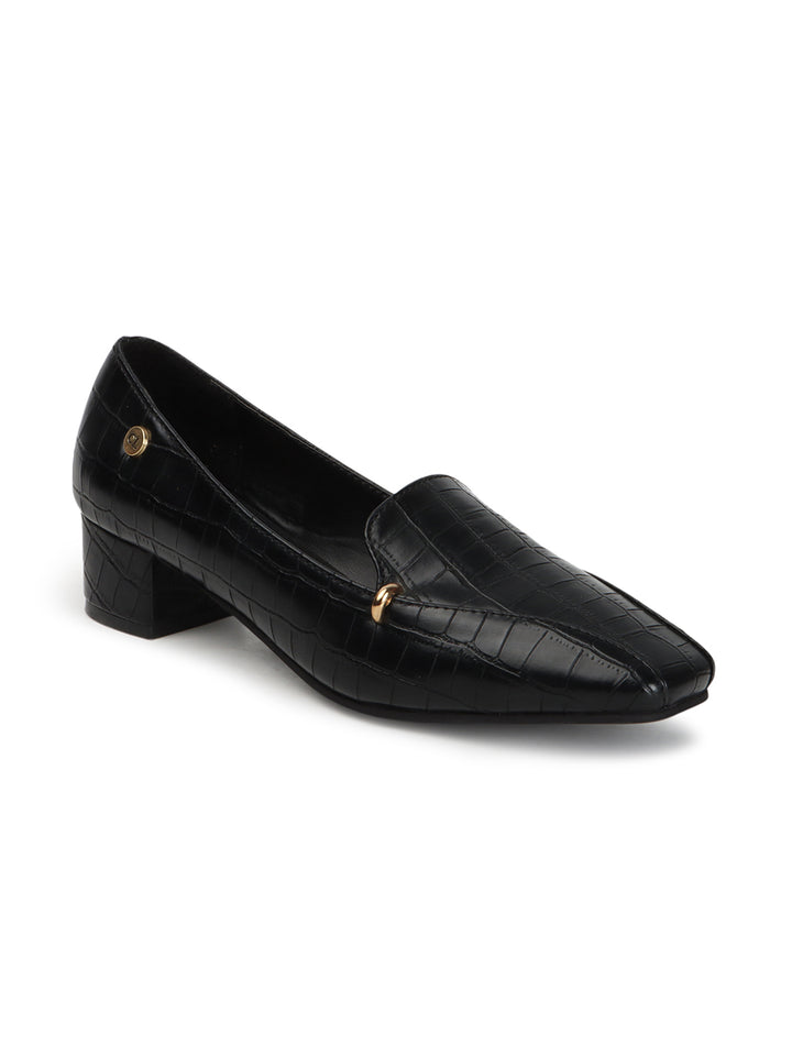 Women's Textured Square Toe Block Heeled Pumps