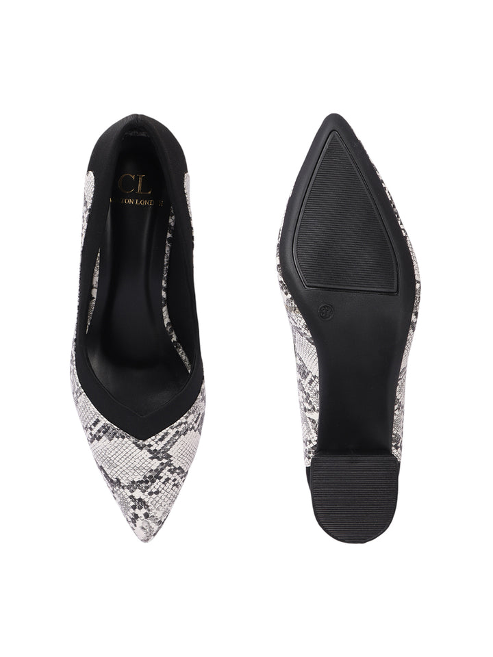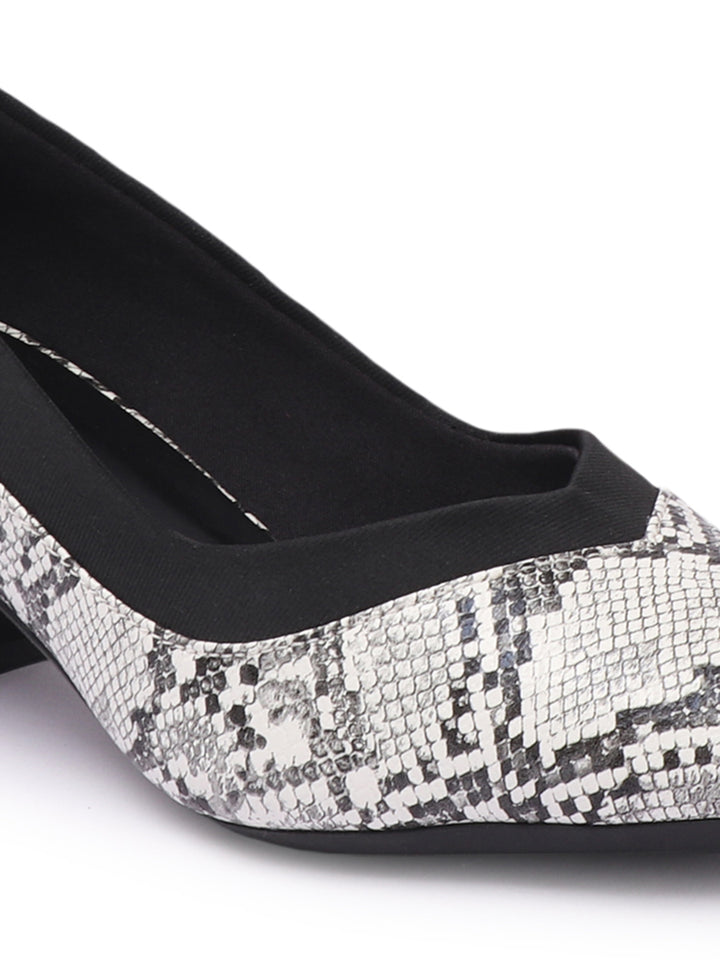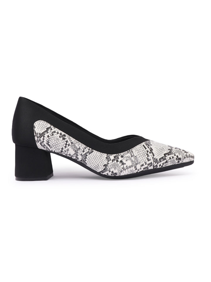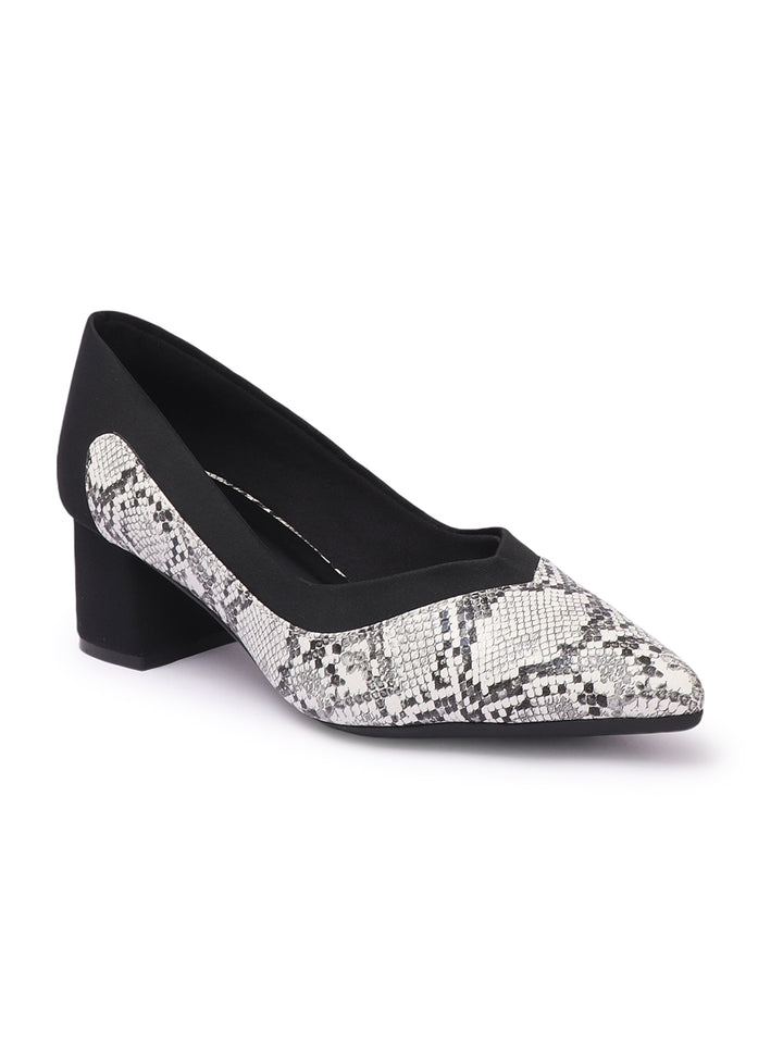 Women's Two-Tone Snake Print Block Heel Pumps