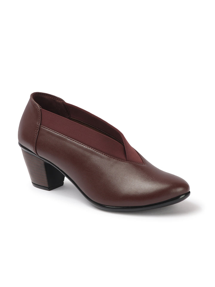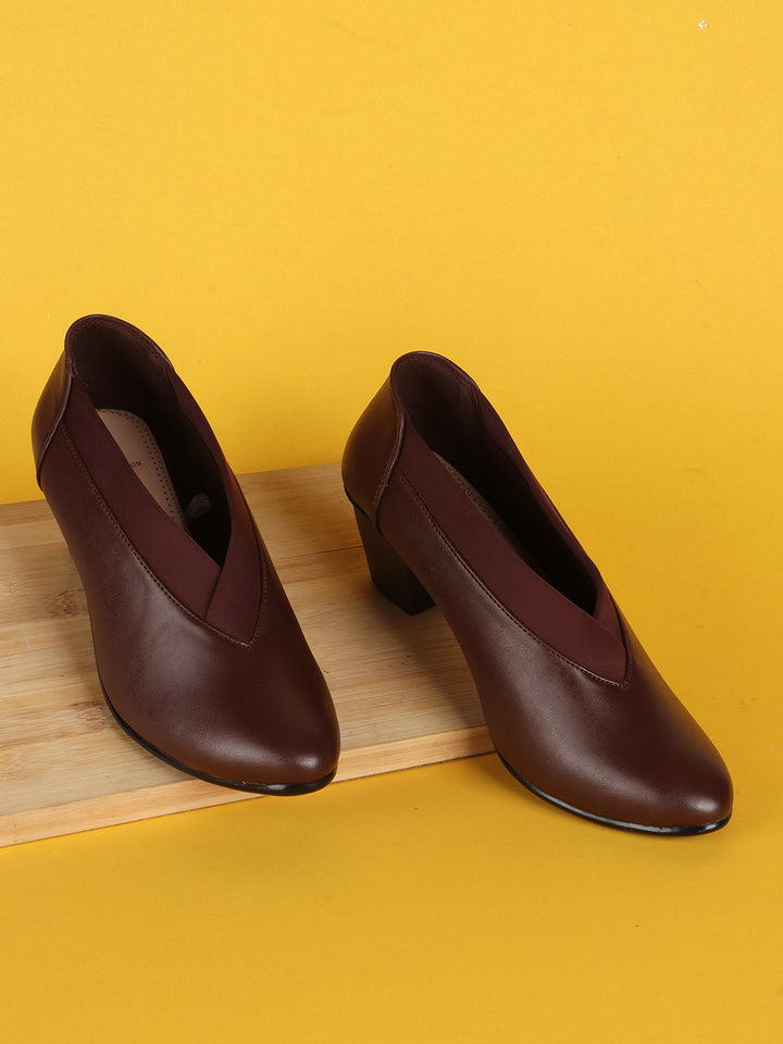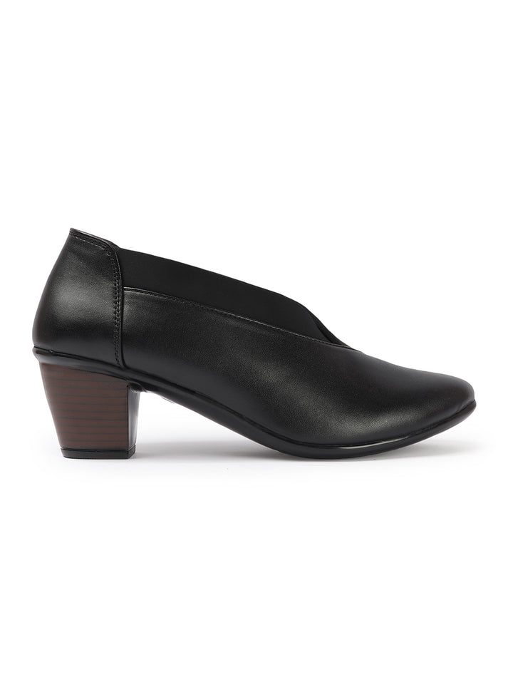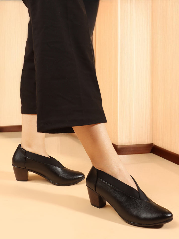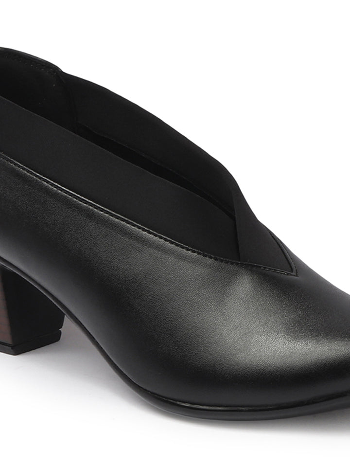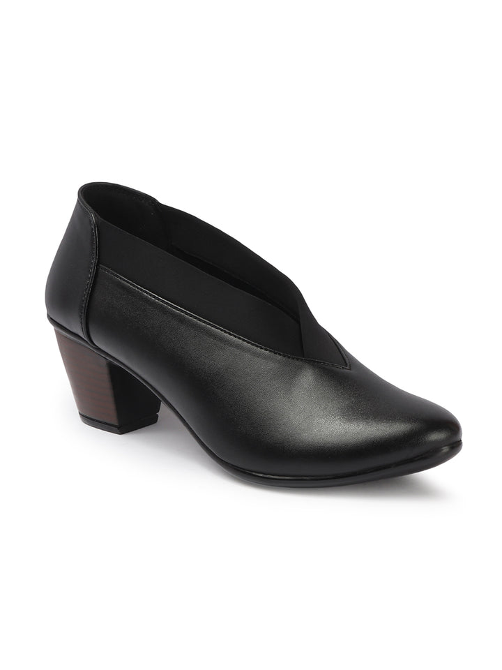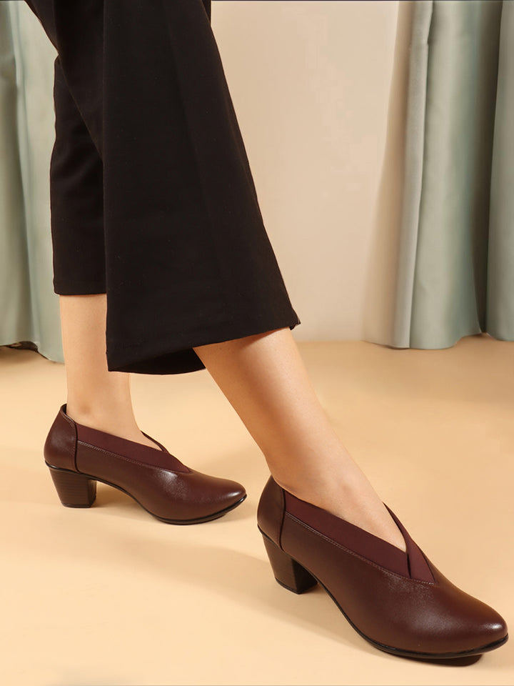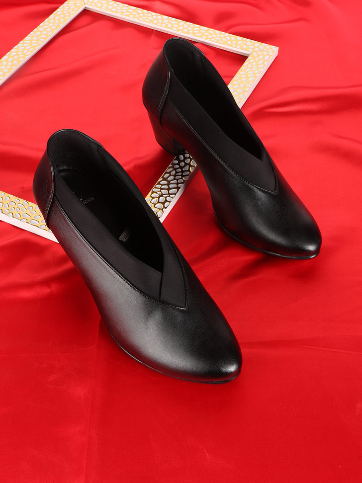 Women's V-Cut Slip-On Block Heel Pumps