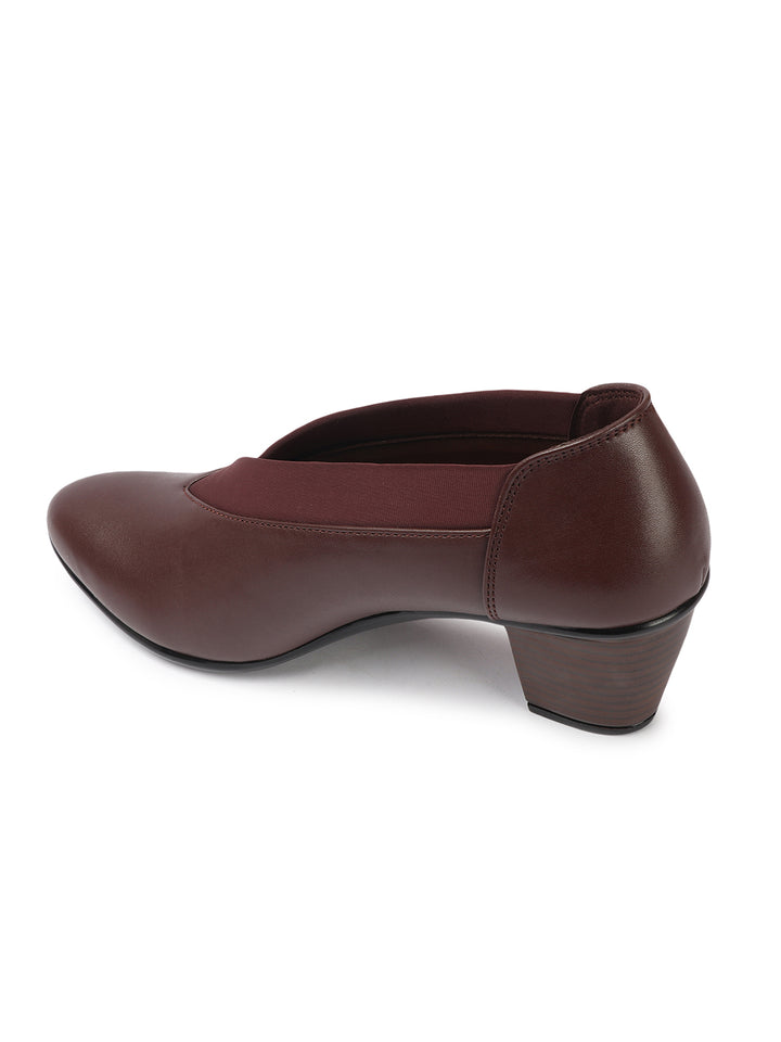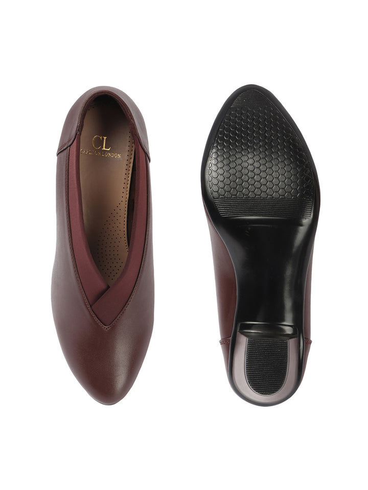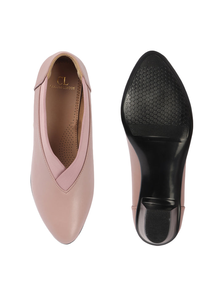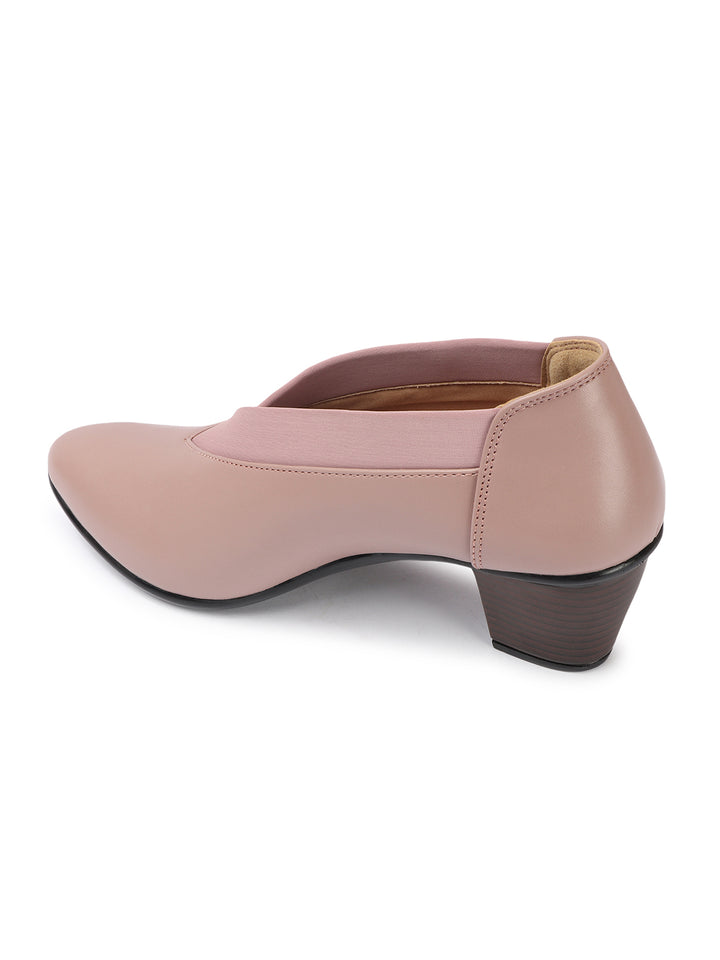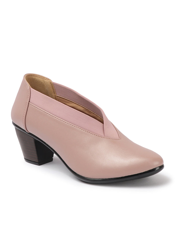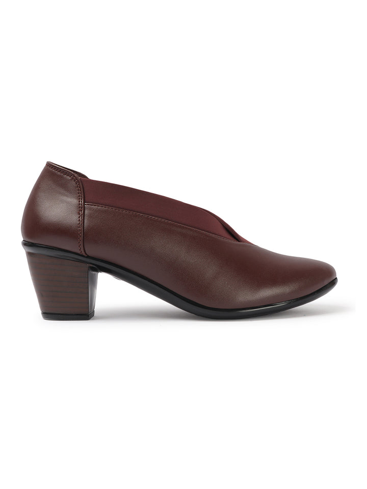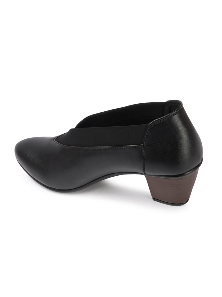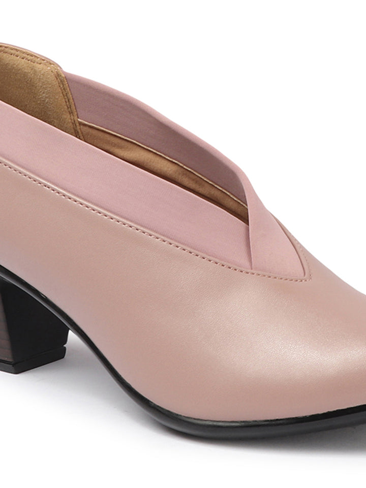 Women's V-Cut Slip-On Block Heel Pumps