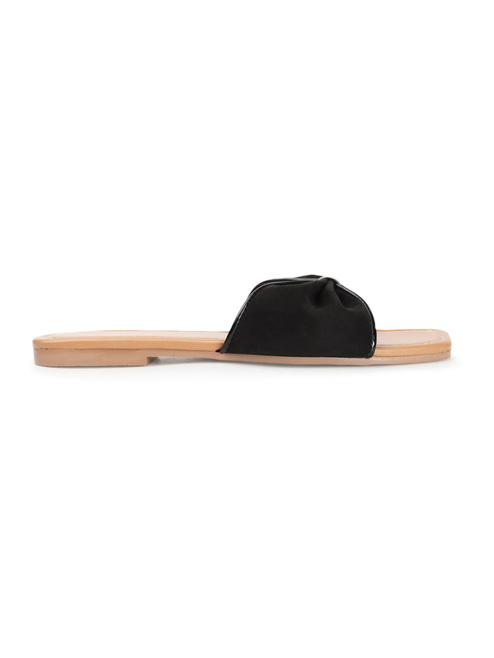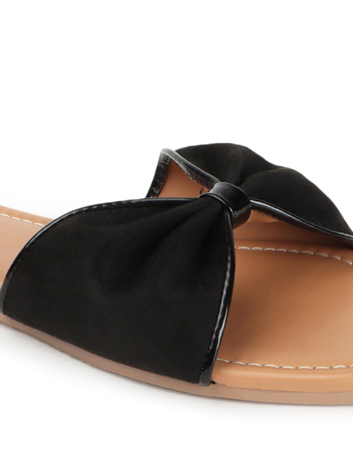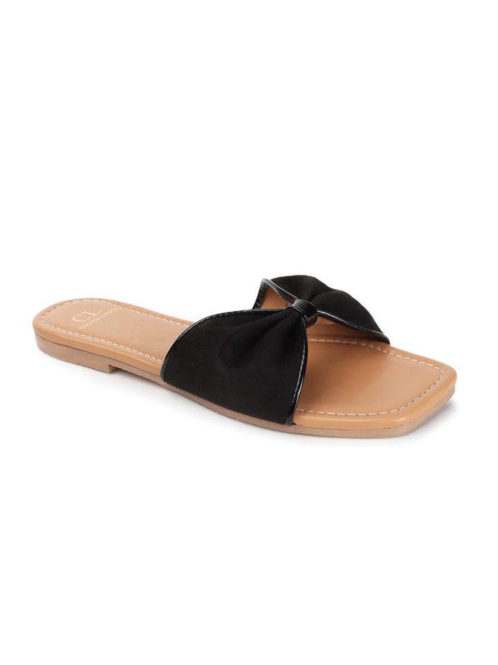 Women's Wide Strap Comfort Bow Detail Square Toe Flats