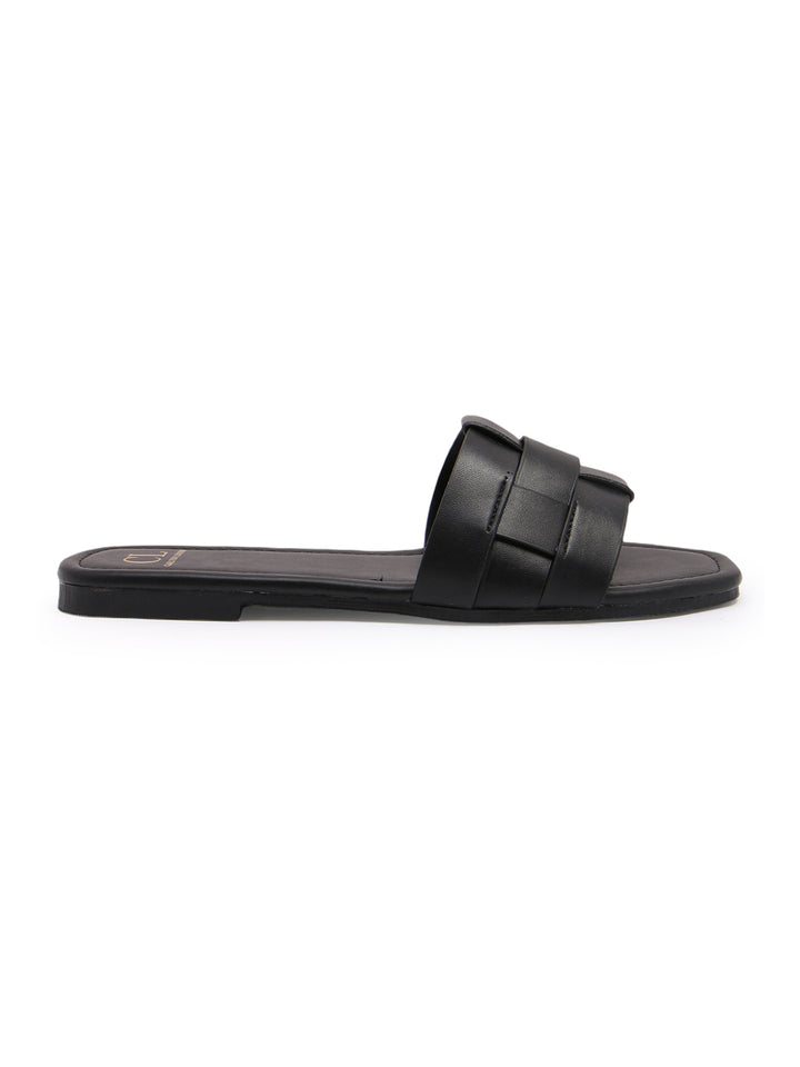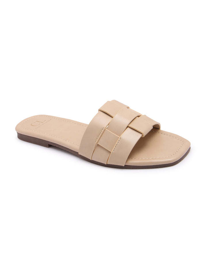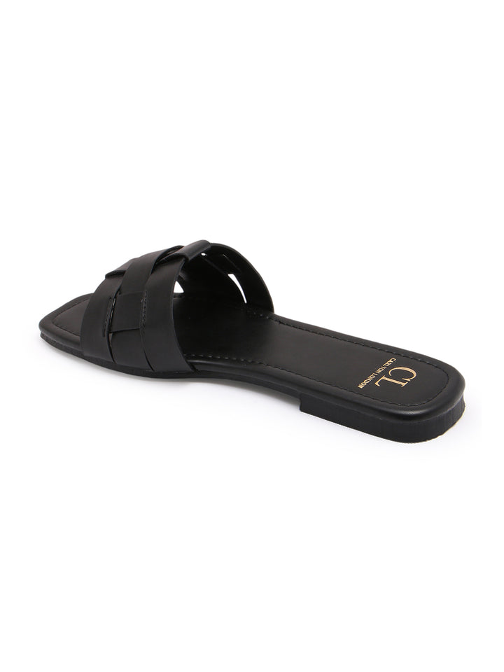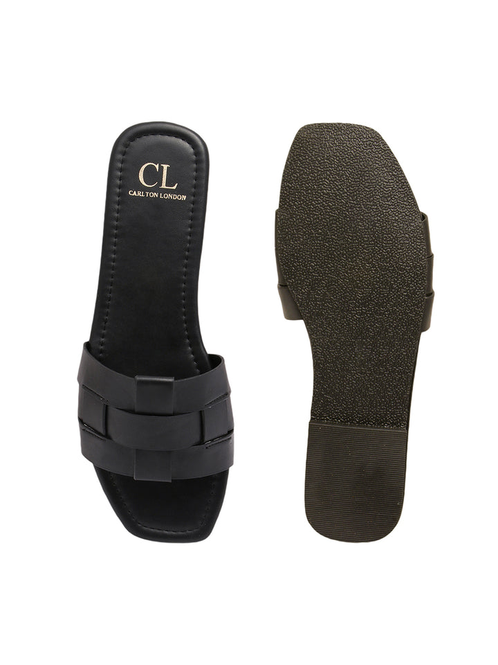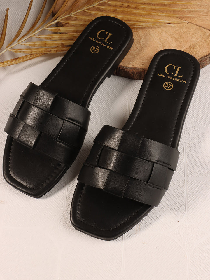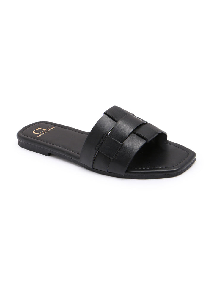 Carlton London Women's Woven Strap Square Toe Slide Sandals