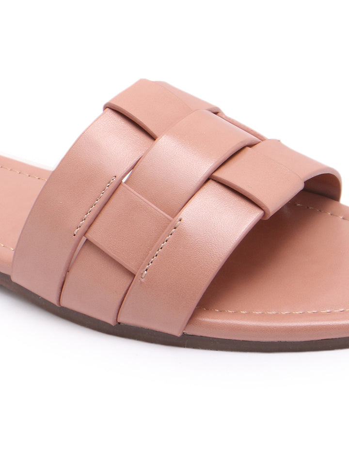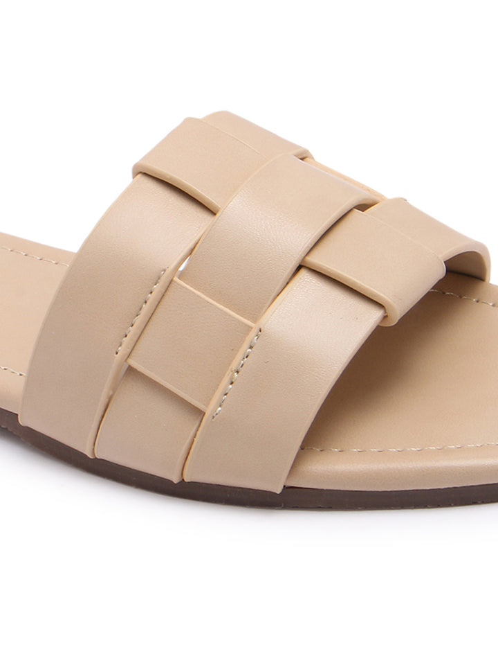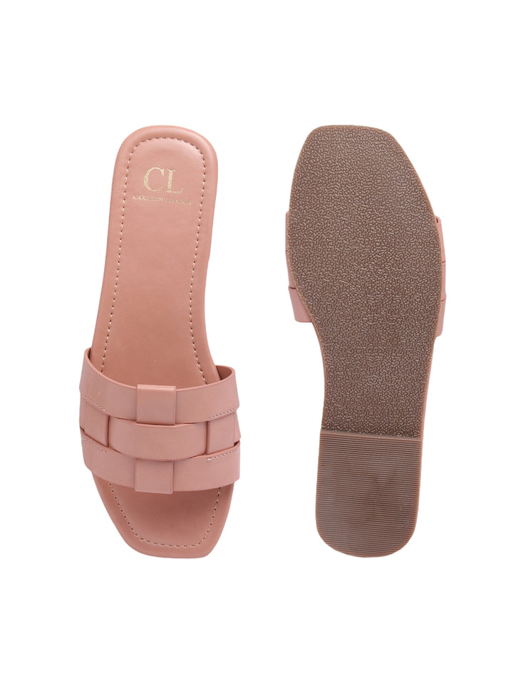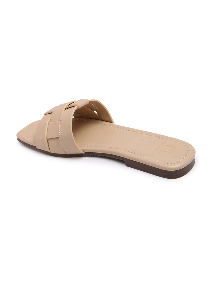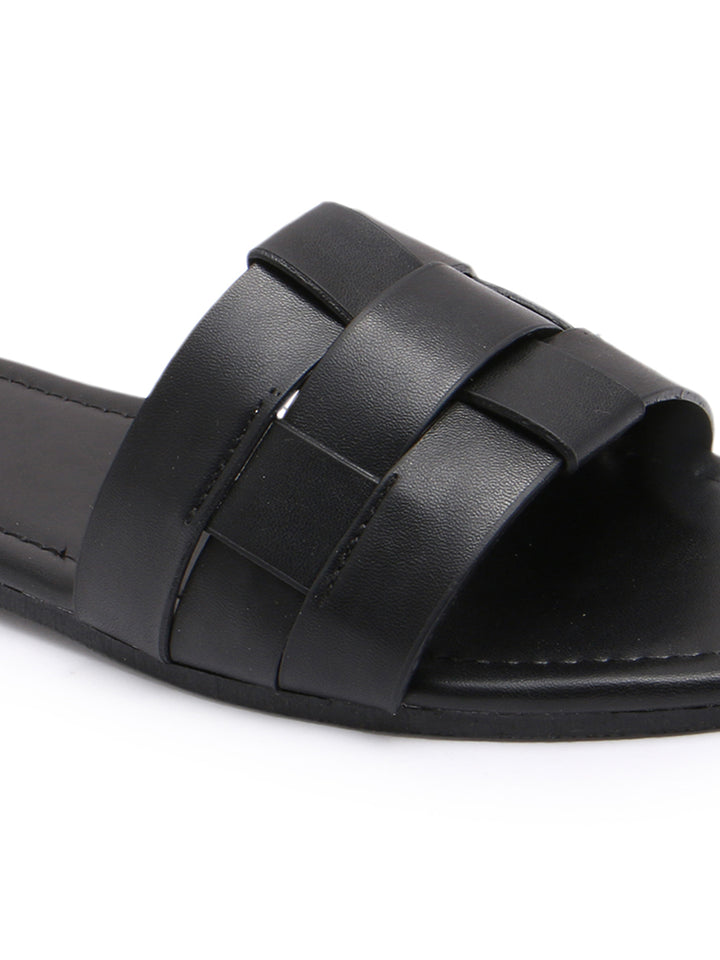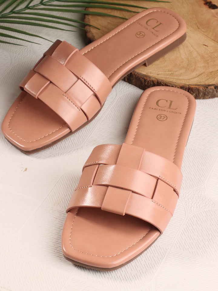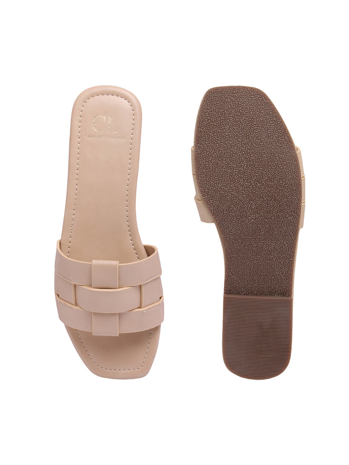 Carlton London Women's Woven Strap Square Toe Slide Sandals
